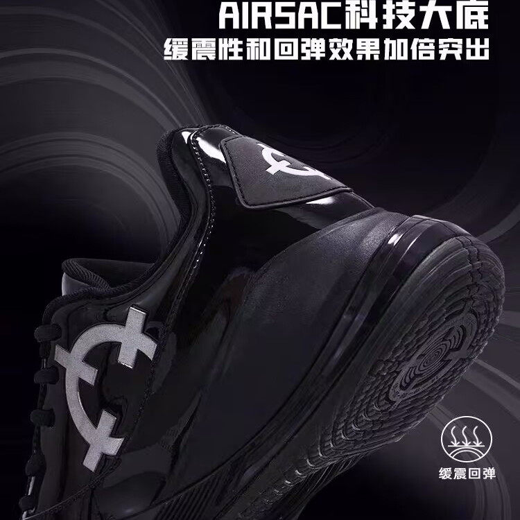 准者篮球裁判鞋黑色漆皮亮面低帮耐磨防滑缓震裁判比赛专用运动鞋