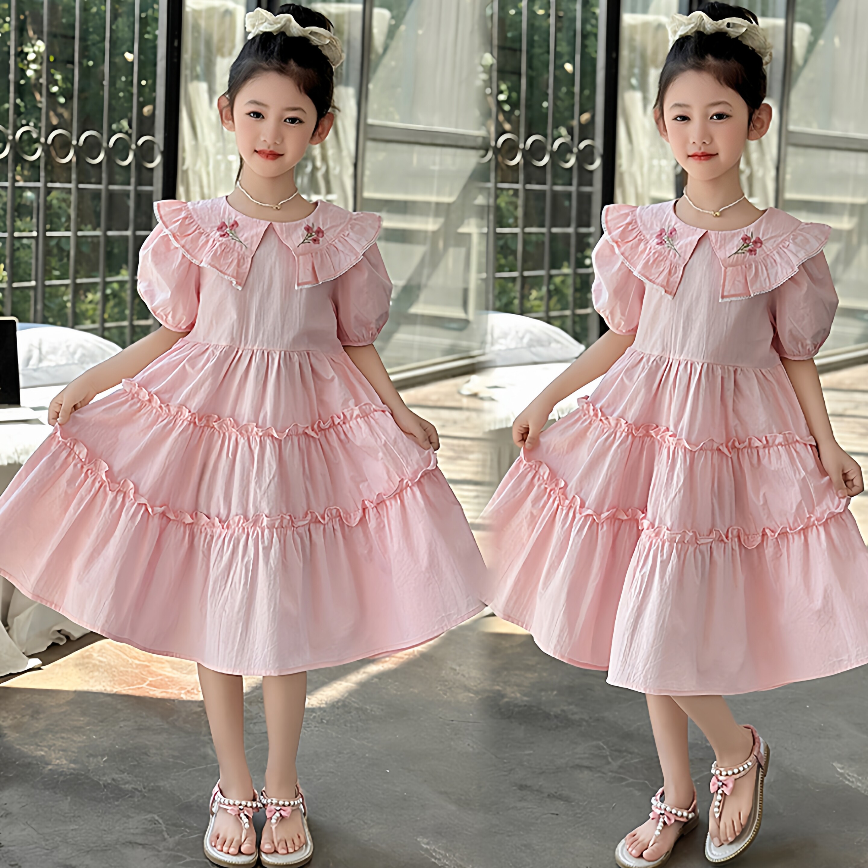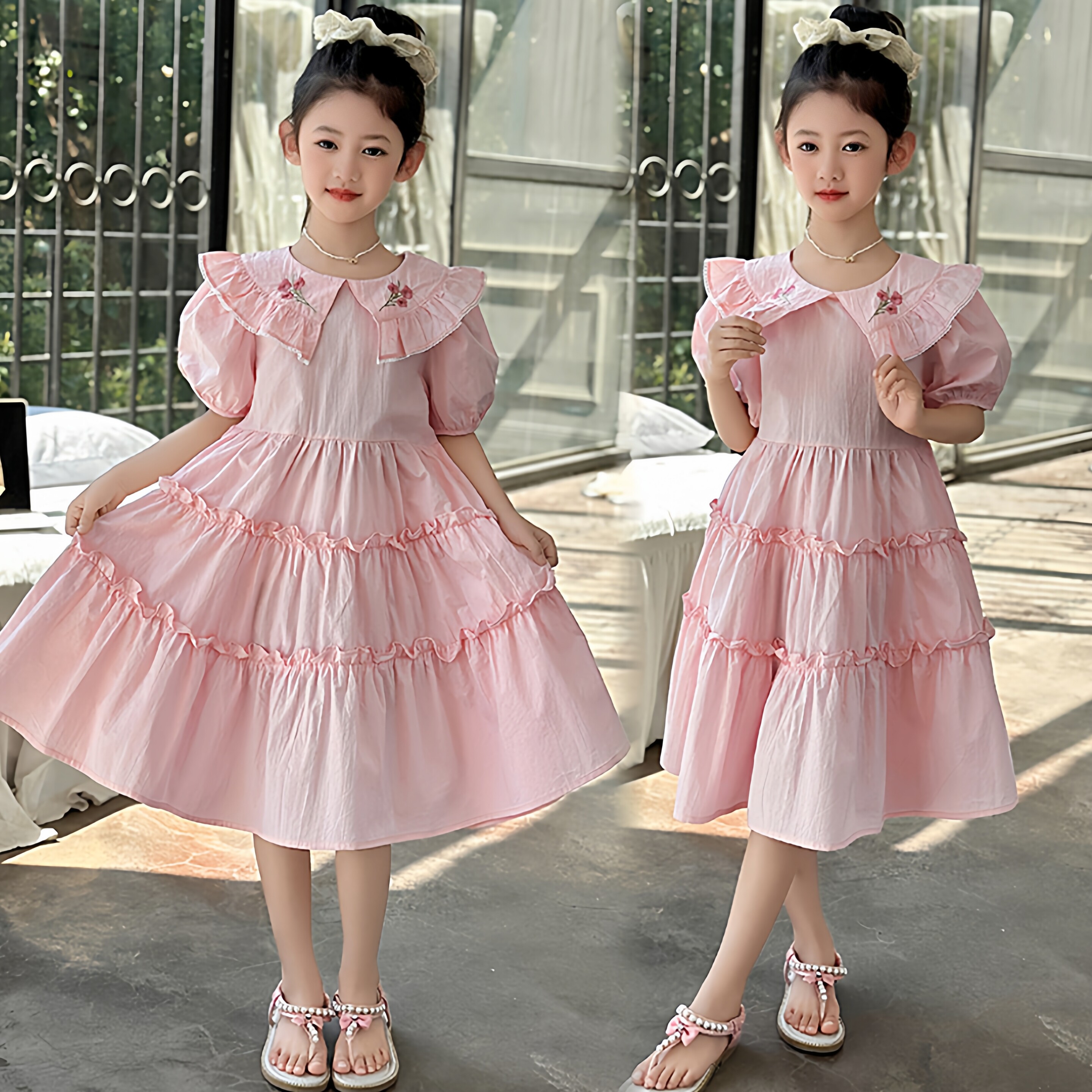 女童2026新款连衣裙夏薄款高级感中大童甜美公主风刺绣棉布裙子潮