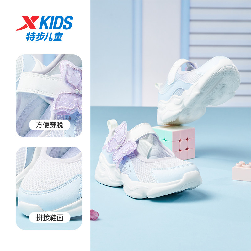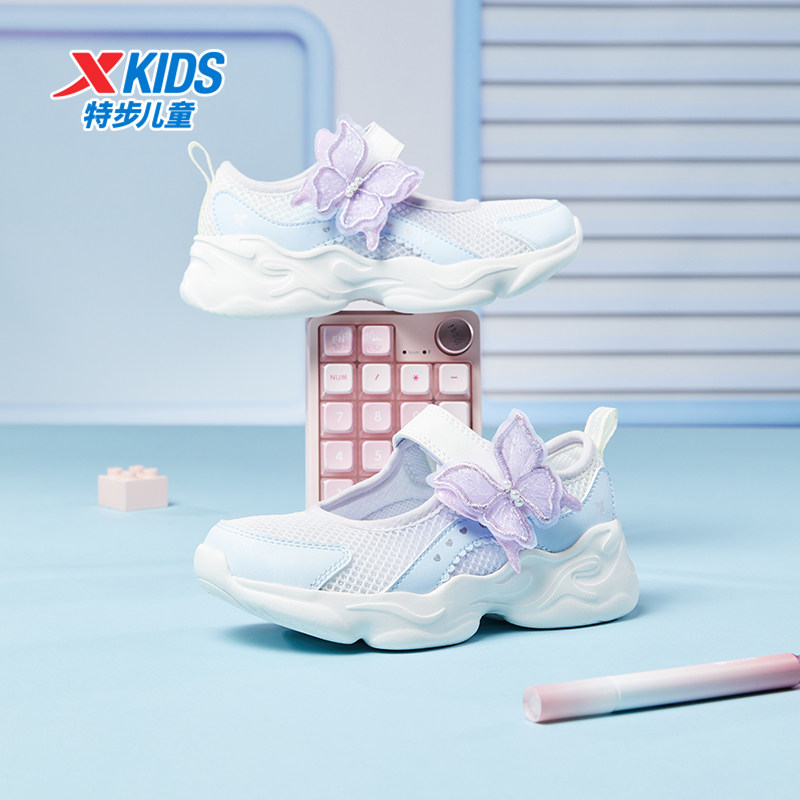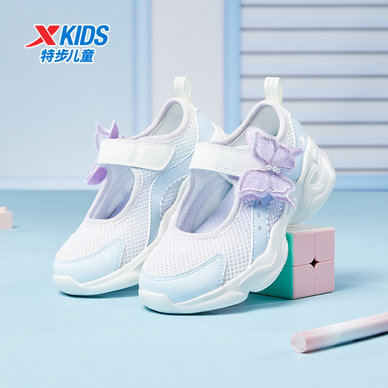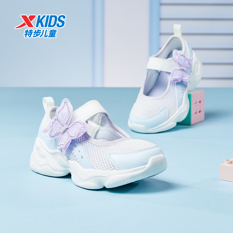 特步女童玛丽珍凉鞋夏季透气休闲运动魔术贴软底不累脚