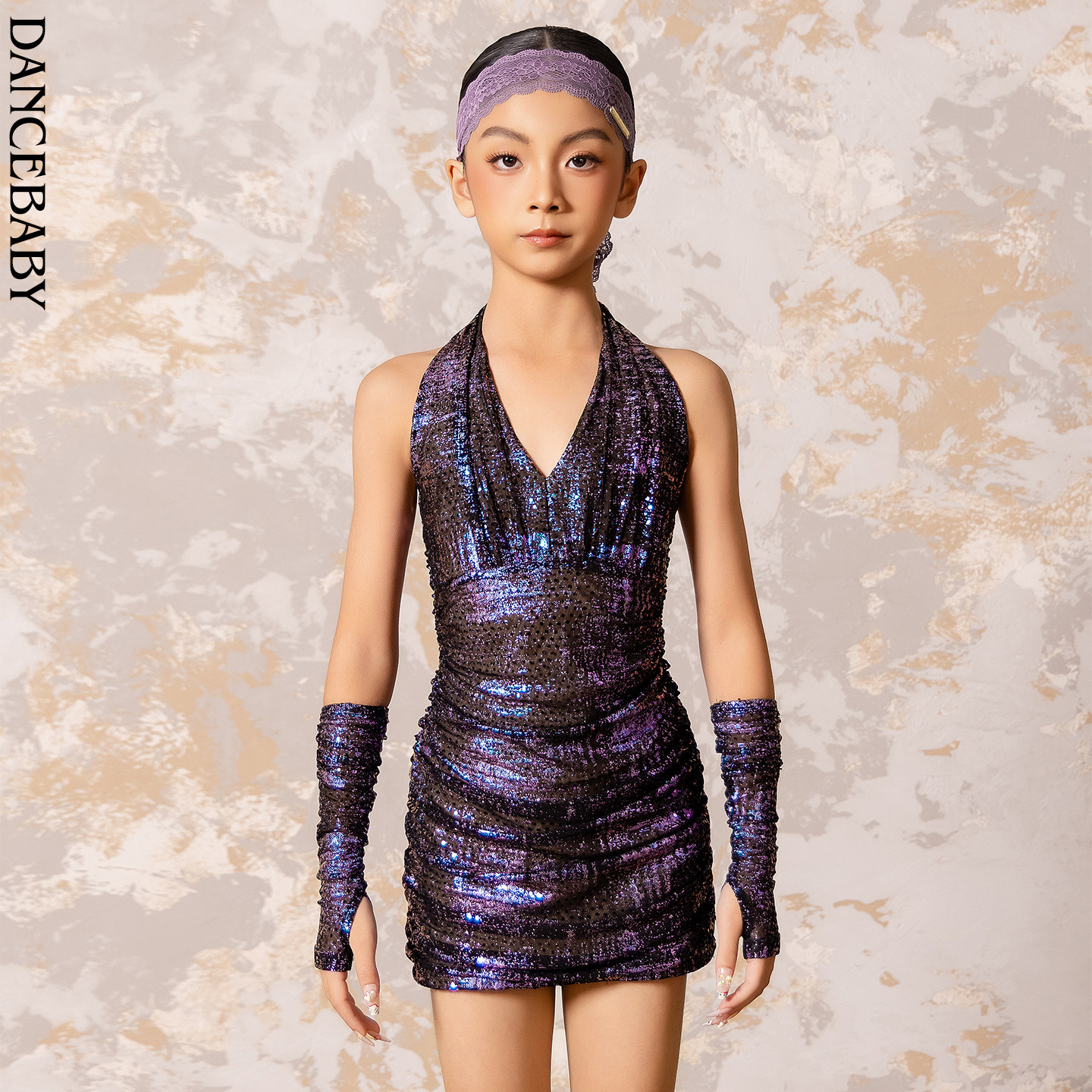 Dancebaby拉丁舞服女童2026新款冬装比赛服绝美亮片连衣裙训练D79