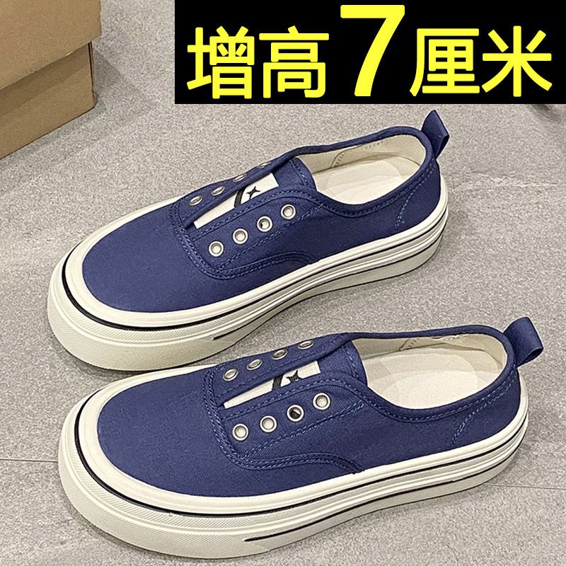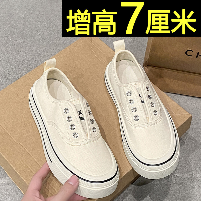 内增高帆布鞋女2026新款夏季薄款小白鞋百搭透气厚底运动休闲板鞋