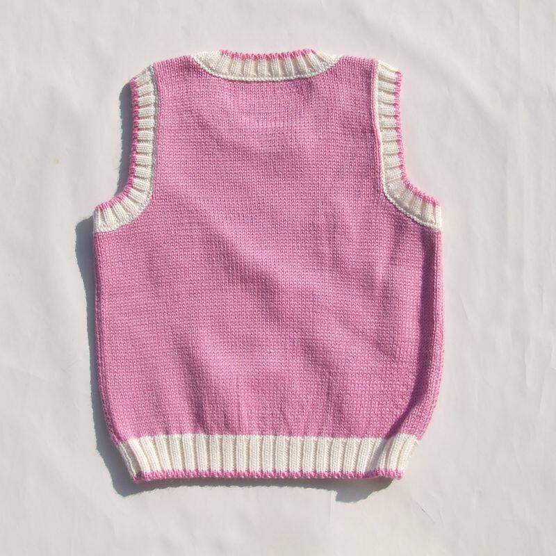 手工编织婴儿羊毛线背心/宝宝毛衣粉色男女童毛衣马夹