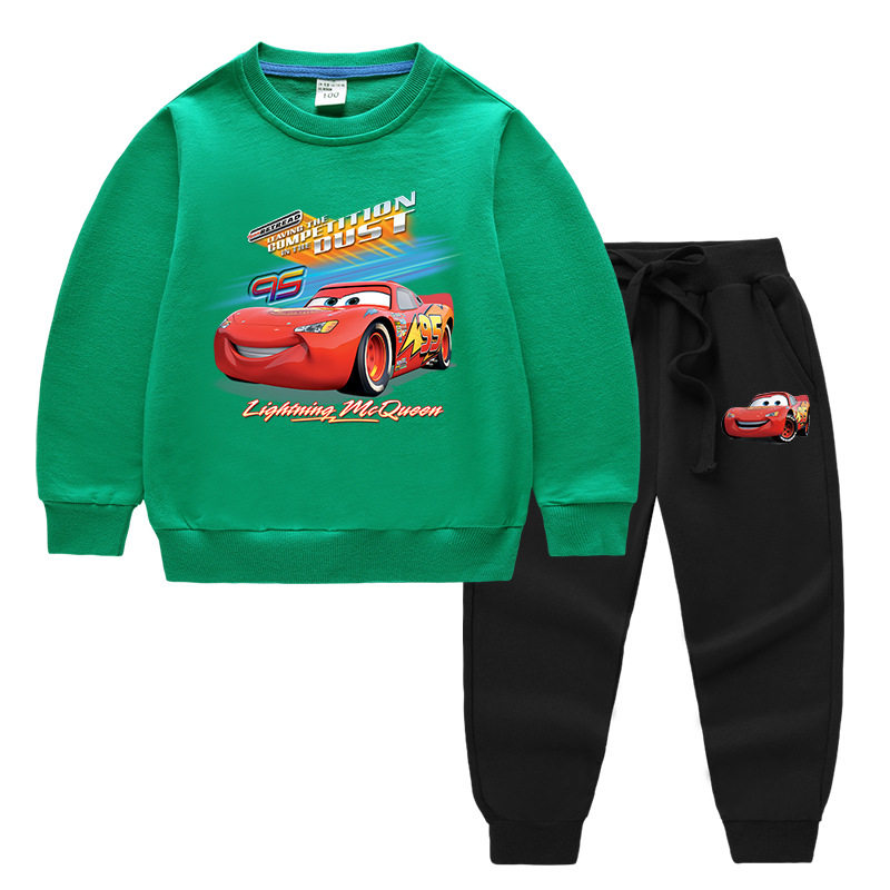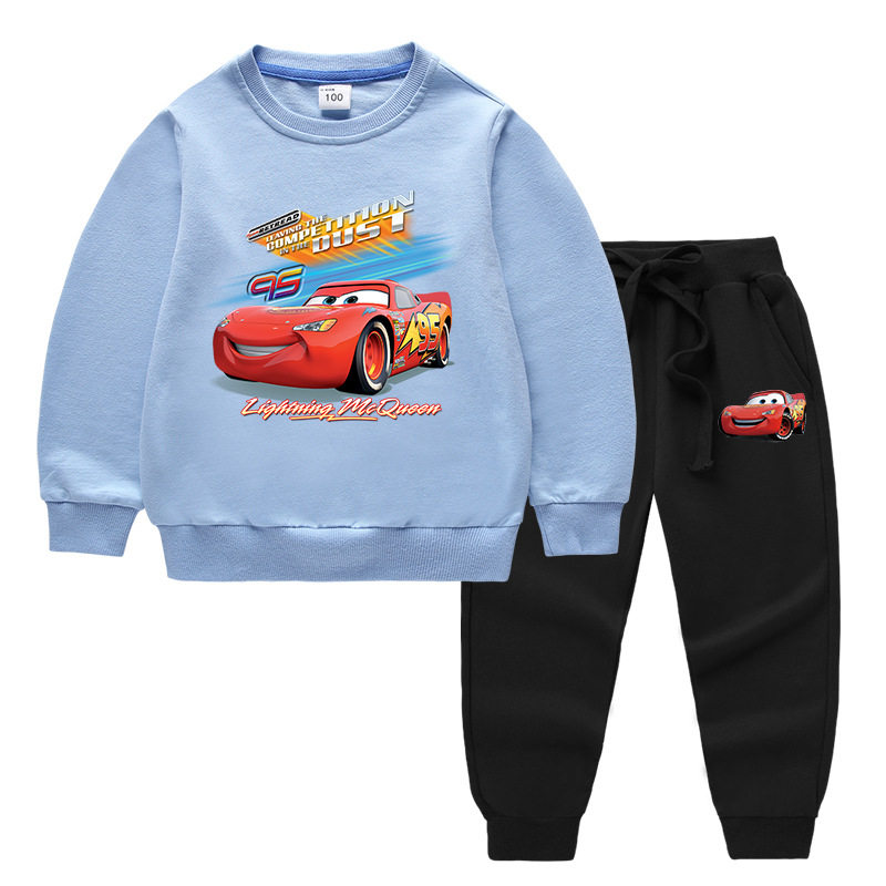 麦昆车衣服男童套装春装卡通儿童长袖卫衣纯棉上衣小汽车图案童装