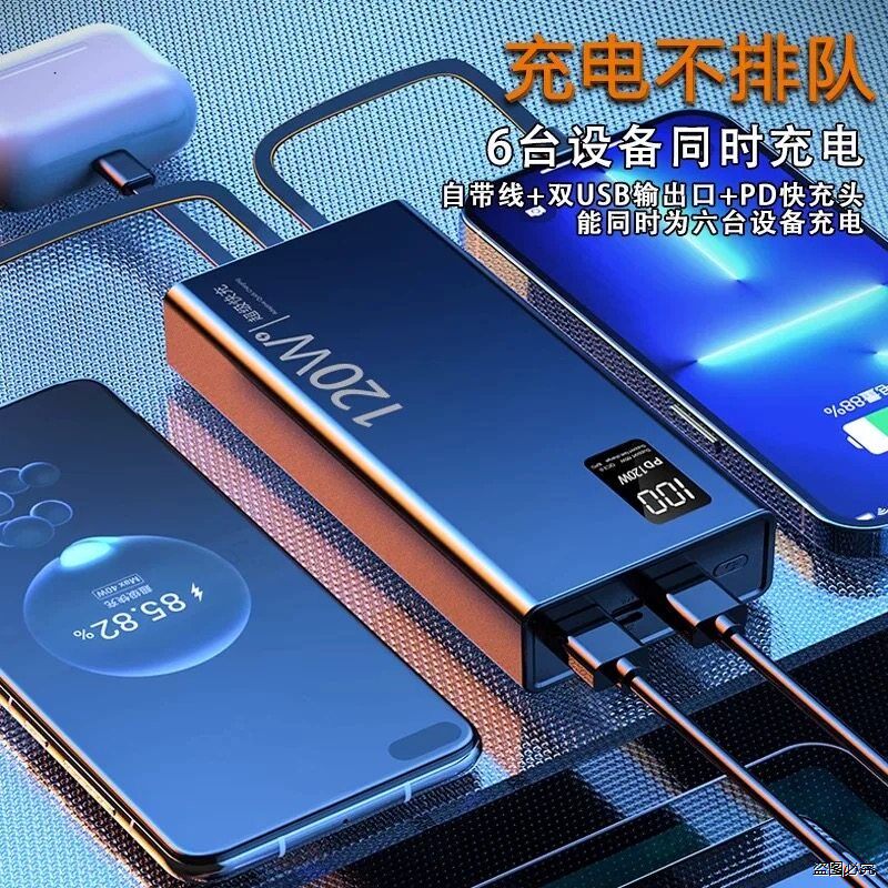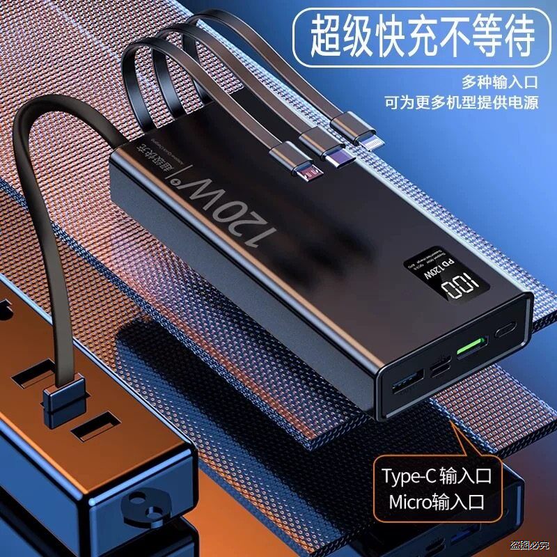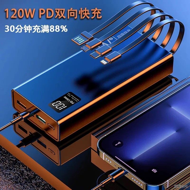 3C认证50000毫安充电宝自带线30000大容量超级快充适用手机全通用