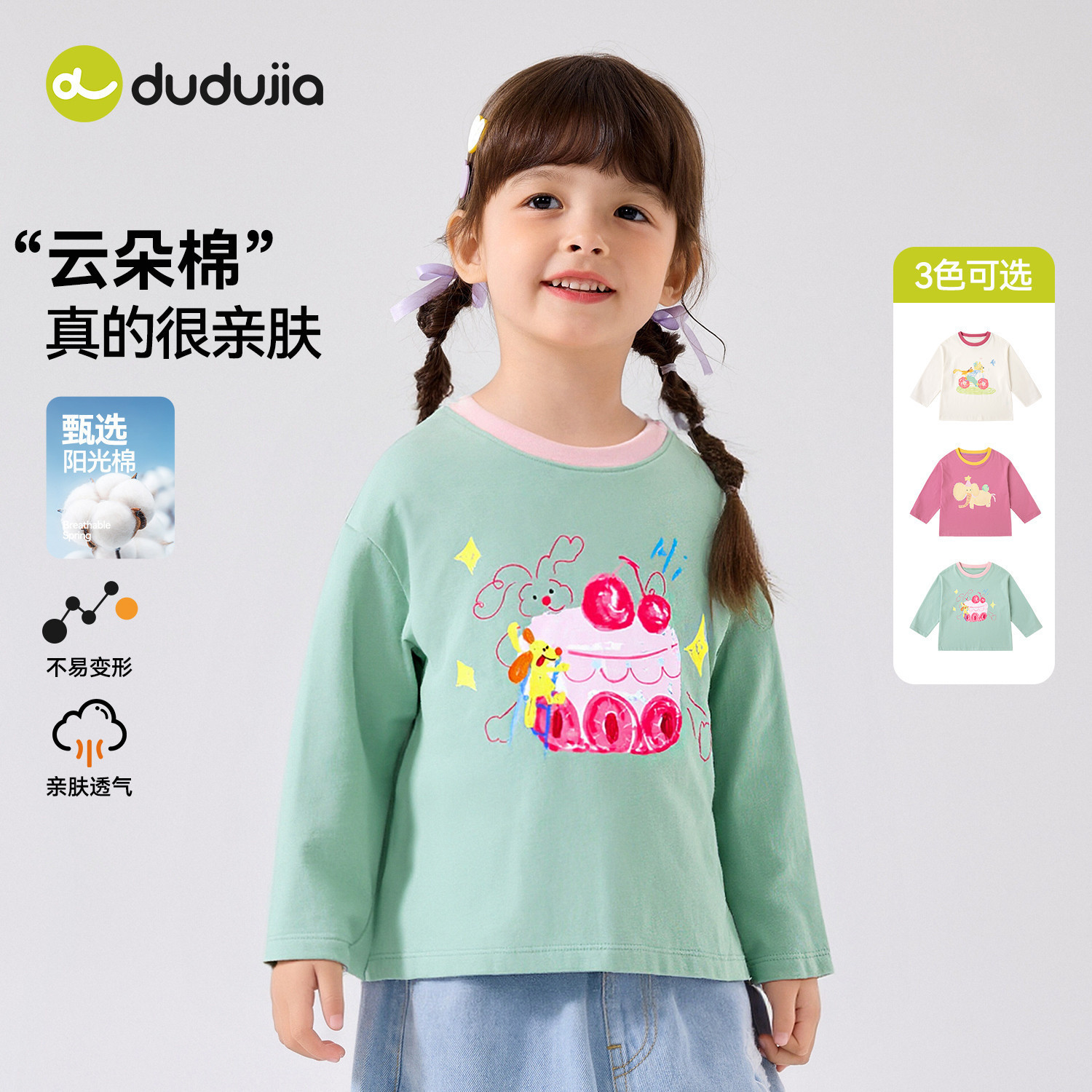 【100%棉】嘟嘟家女童长袖纯棉T恤春季女宝上衣小女生春装打底潮