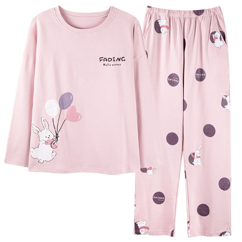 浪莎睡衣女款春秋季纯棉长袖卡通可爱外穿家居服全棉秋冬新款套装