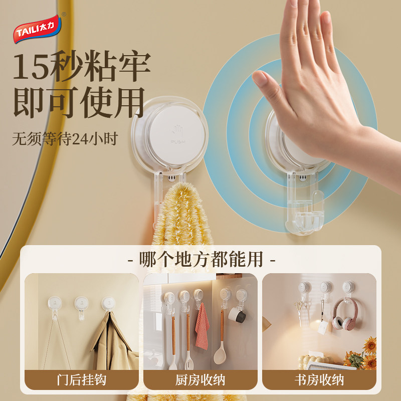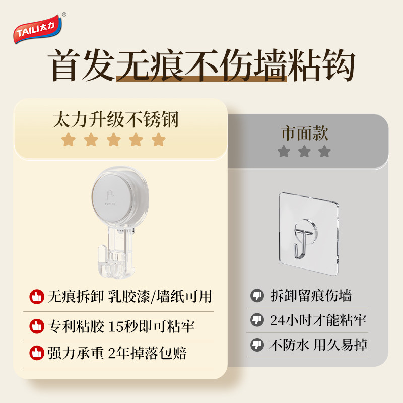 太力乳胶漆墙面免打孔挂钩无痕粘钩白墙墙纸专用门后强力粘胶承重