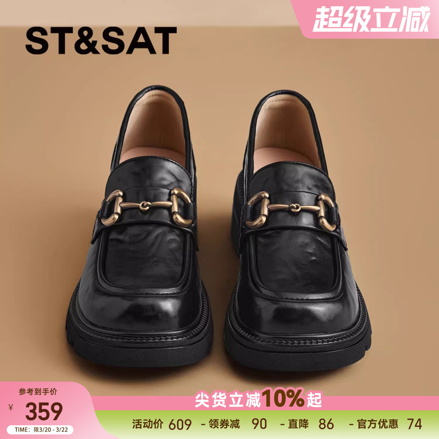 311线报网描述:星期六厚底乐福鞋女不累脚一脚蹬黑色小皮鞋