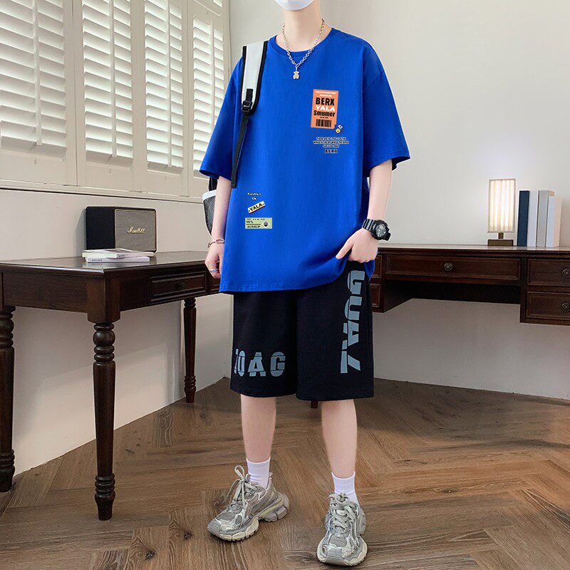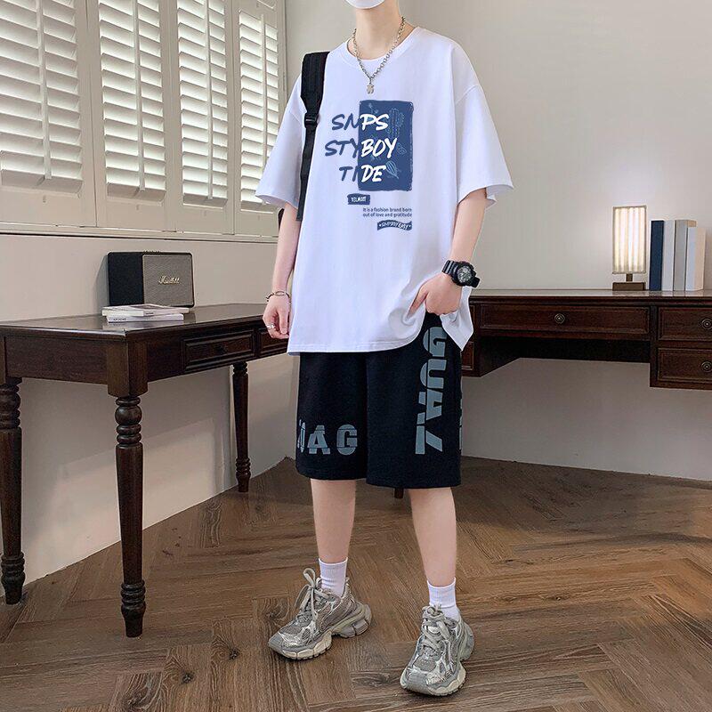 夏季纯棉青少年短袖t恤男2025新款大童潮流帅气初中学生运动套装