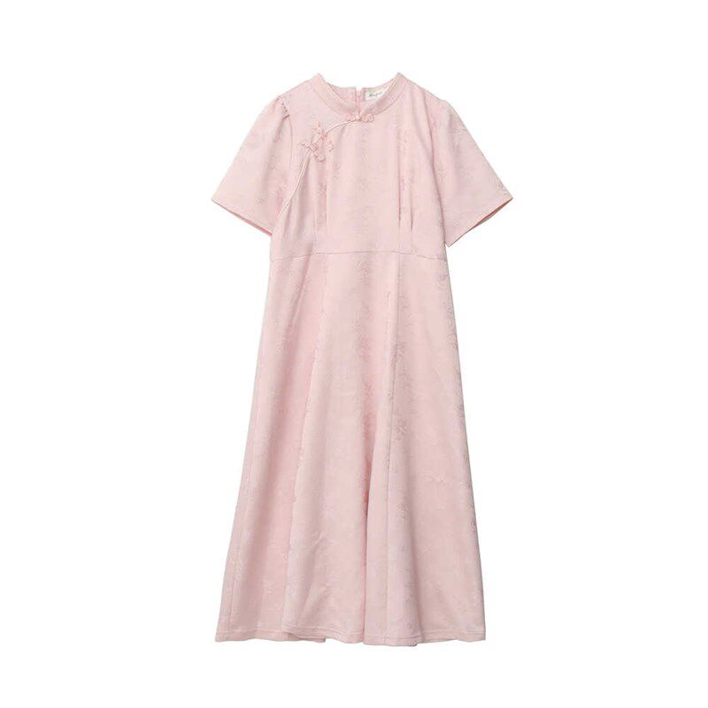 夏季新品大码女装胖mm新中式改良版国风长短款高腰立领提花连衣裙