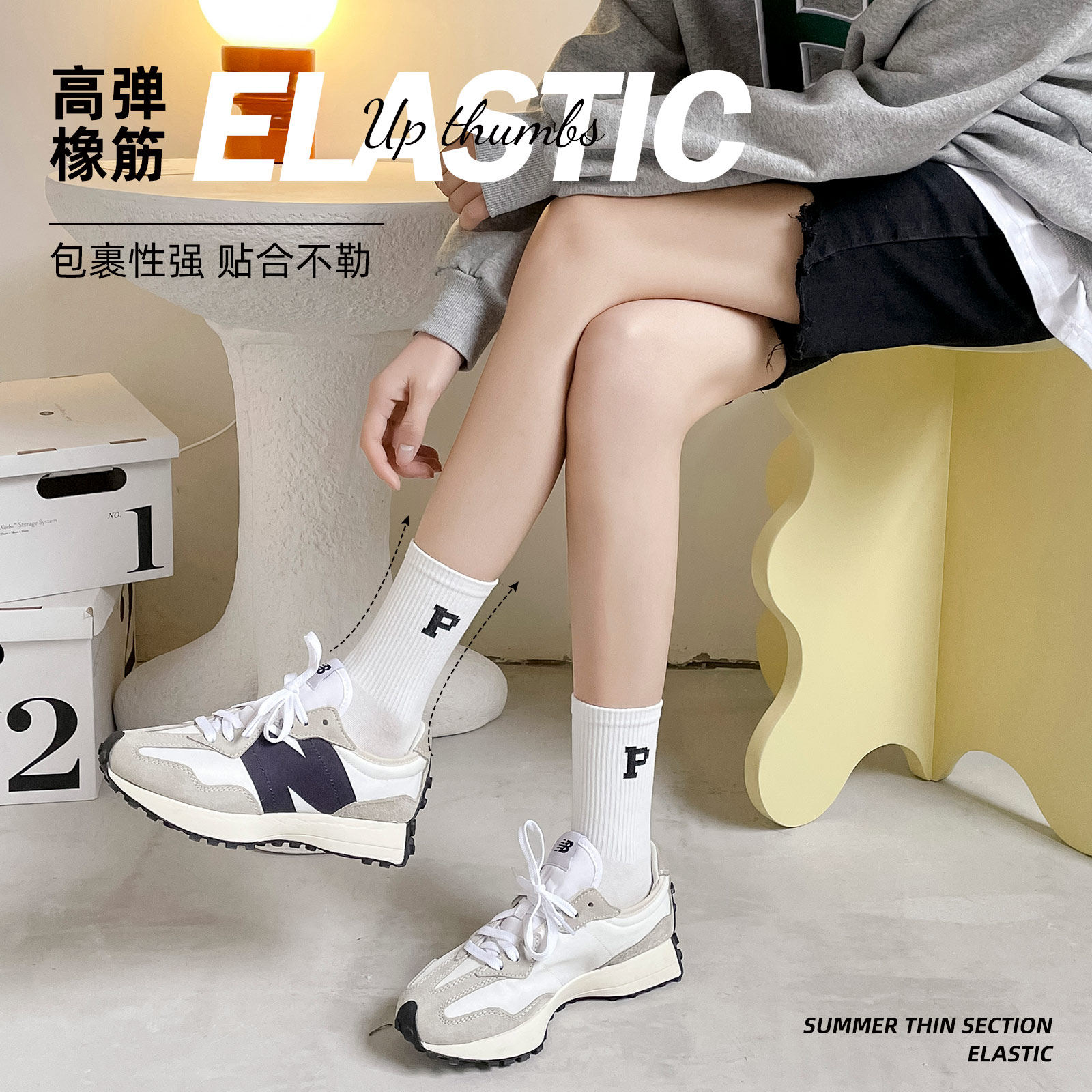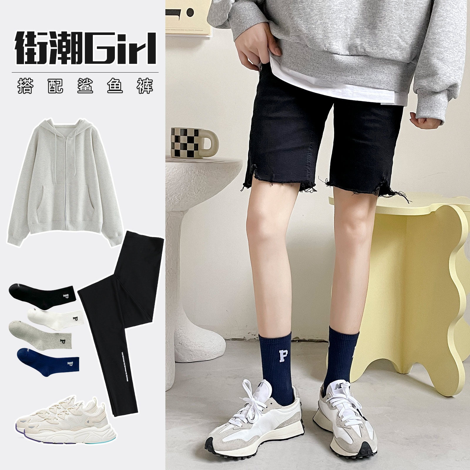 灰色袜子女款纯棉中筒袜潮春夏款运动袜配鲨鱼裤瑜伽裤长筒袜长袜