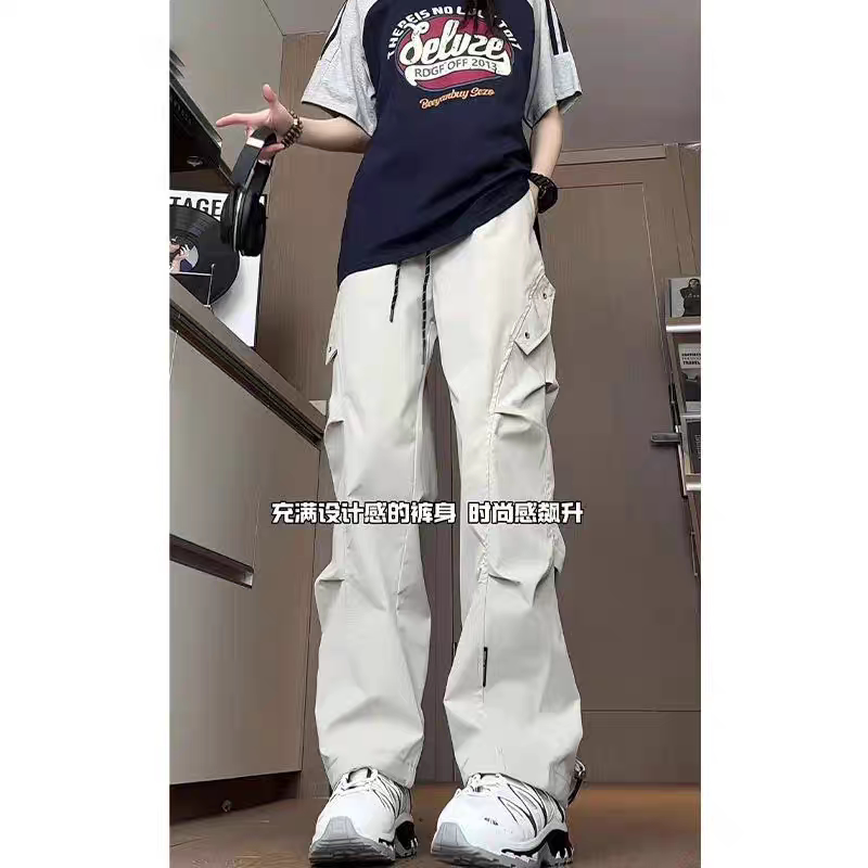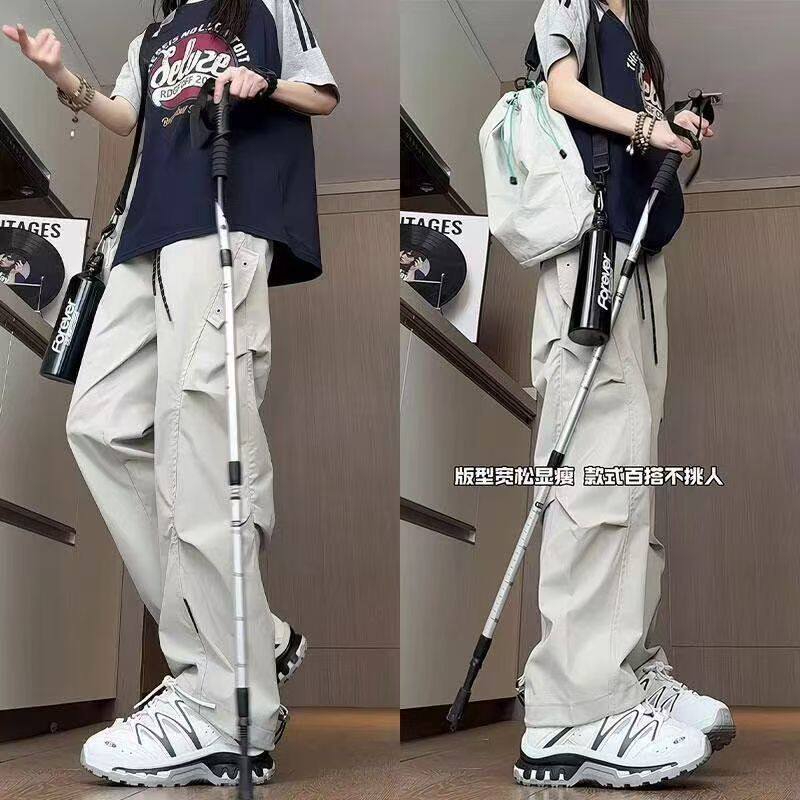 杏色美式三防冲锋裤女款春季褶皱设计感小个子裤子户外登山工装裤
