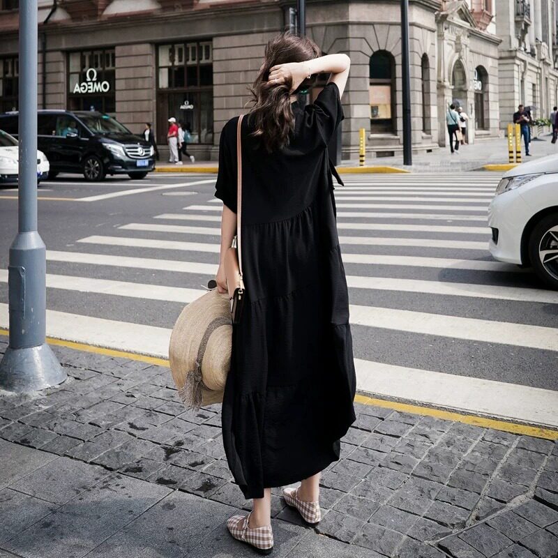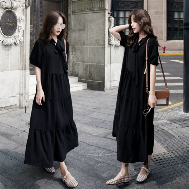 夏季新款大码女装宽松胖MM显瘦遮肚子减龄连衣裙休闲短袖蛋糕长裙