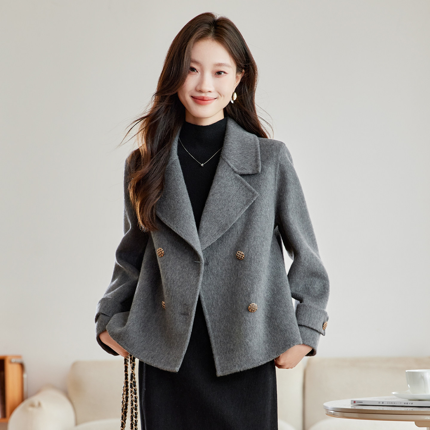 灰色双面羊绒大衣女秋冬高级感女款2025新款冬季短款冬天毛呢外套