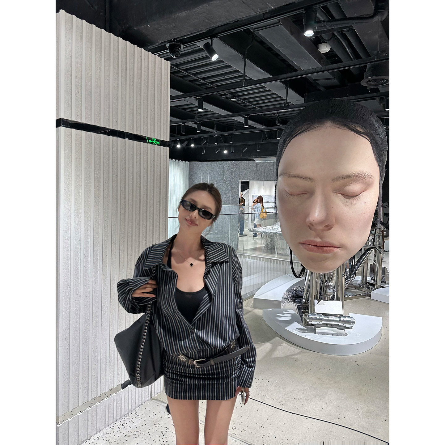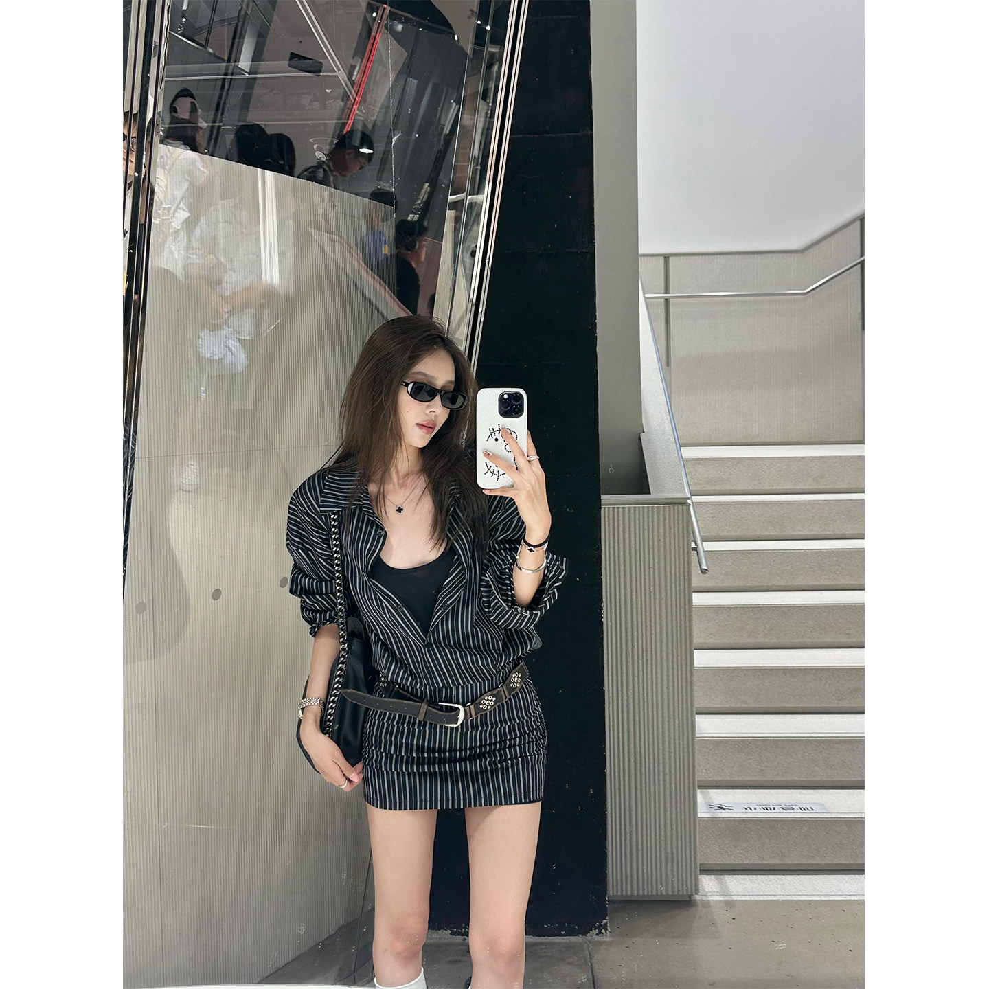 NanaByNana【条纹序曲】白色长袖衬衫连衣裙女夏修身短款包臀裙子