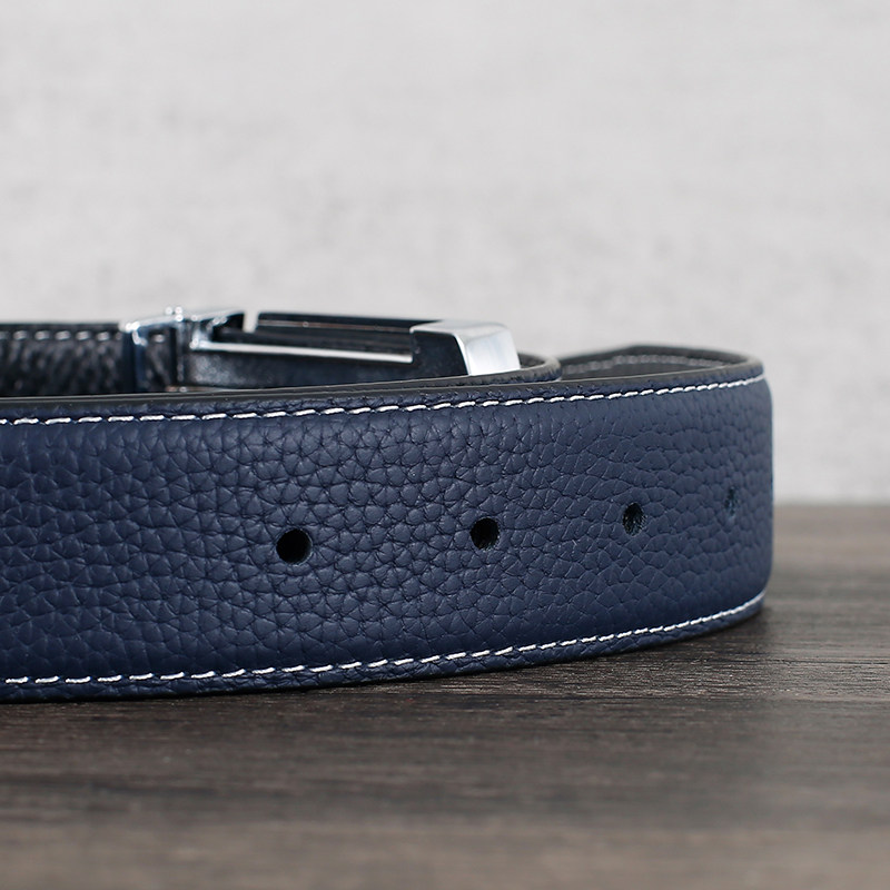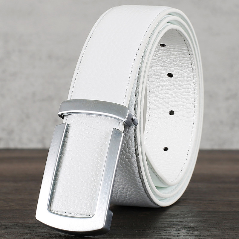 皮带男真皮腰带头层牛皮平滑扣西装裤带蓝白色女简约年轻人韩版潮