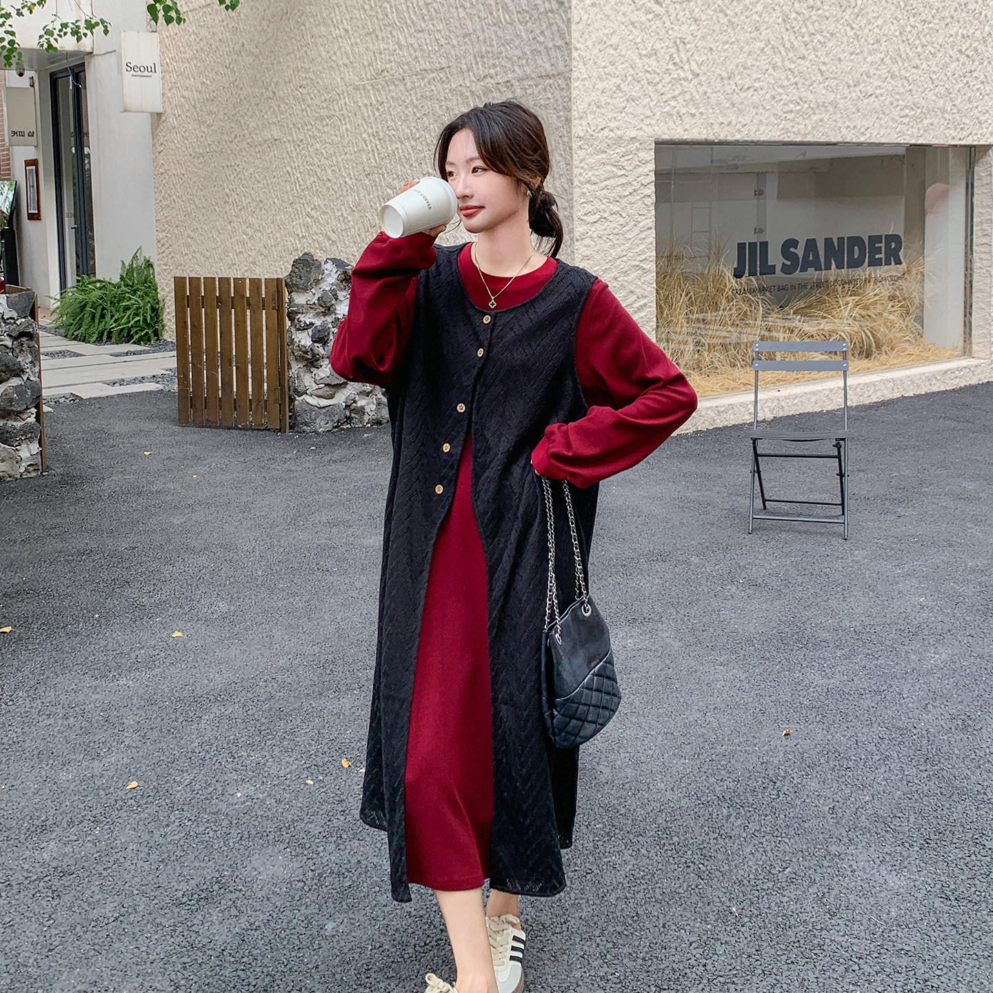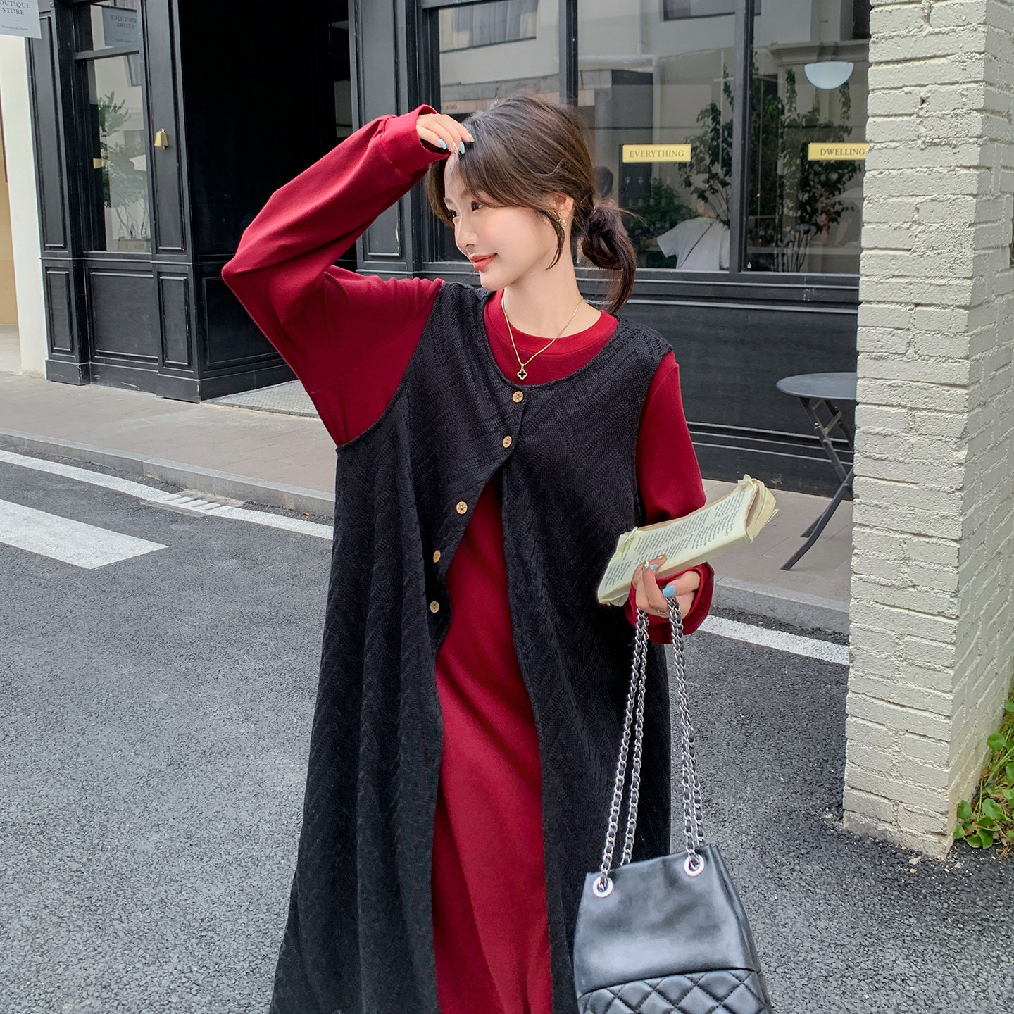 今年流行爆款时尚高级感长袖连衣裙套装2026春新款休闲罩衫两件套