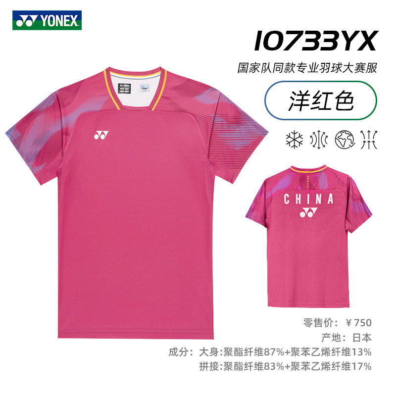 2026新款YONEX尤尼克斯羽毛球服中国国家队大赛服yy男女比赛短袖