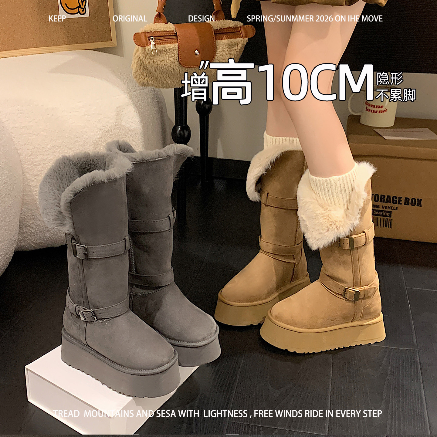 厚底内增高10cm东北雪地靴女款冬季防水防滑灰色高筒保暖雪地棉鞋