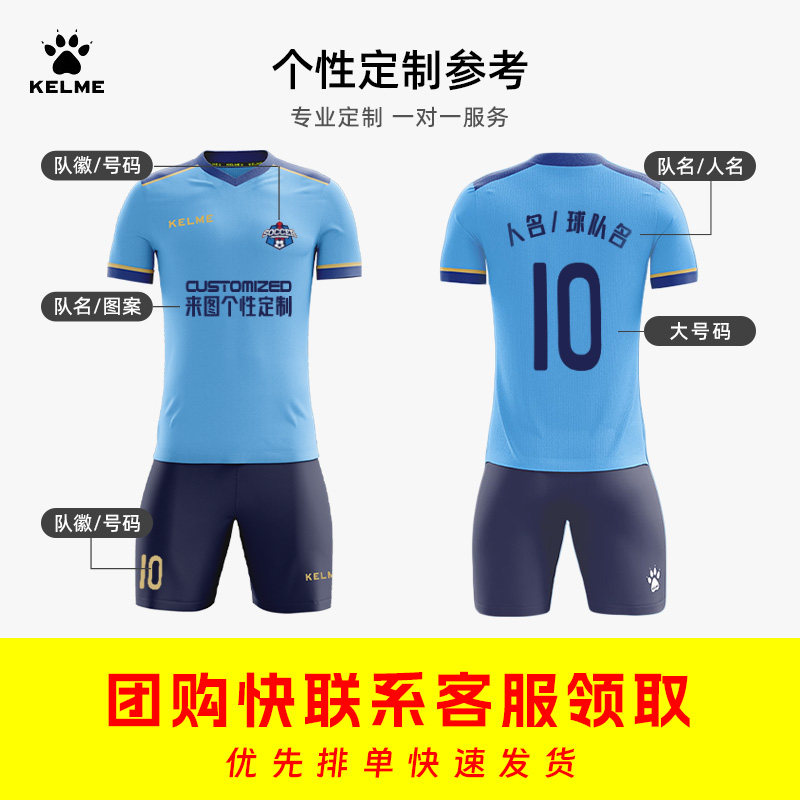 KELME/卡尔美足球服套装成人儿童训练比赛组队队服男子定制球衣