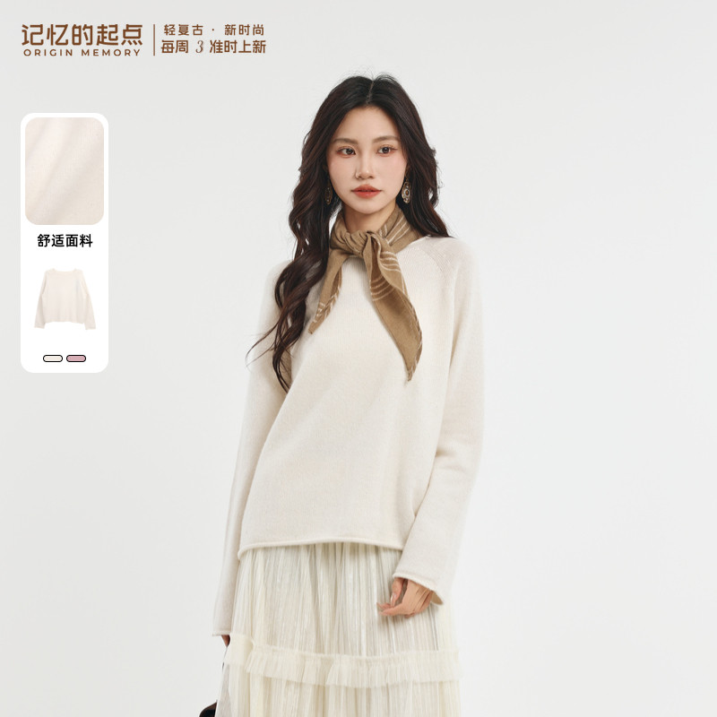 记忆的起点套头毛衣2026春季新款圆领宽松显瘦针织上衣70AC56055