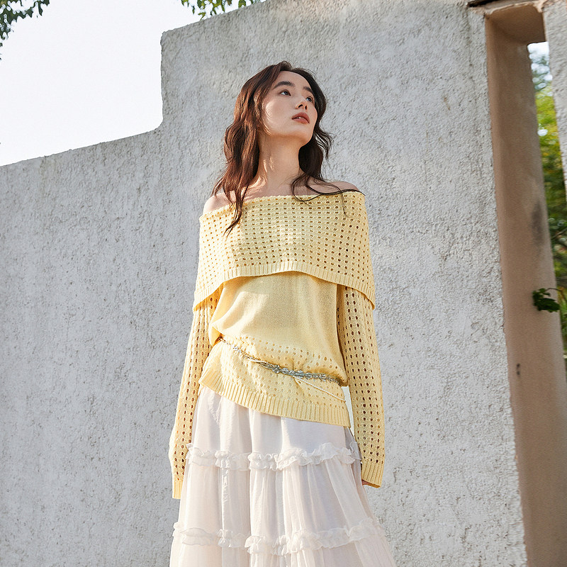 记忆的起点一字肩毛衣2026春季新款时尚显瘦针织上衣女70AC50370