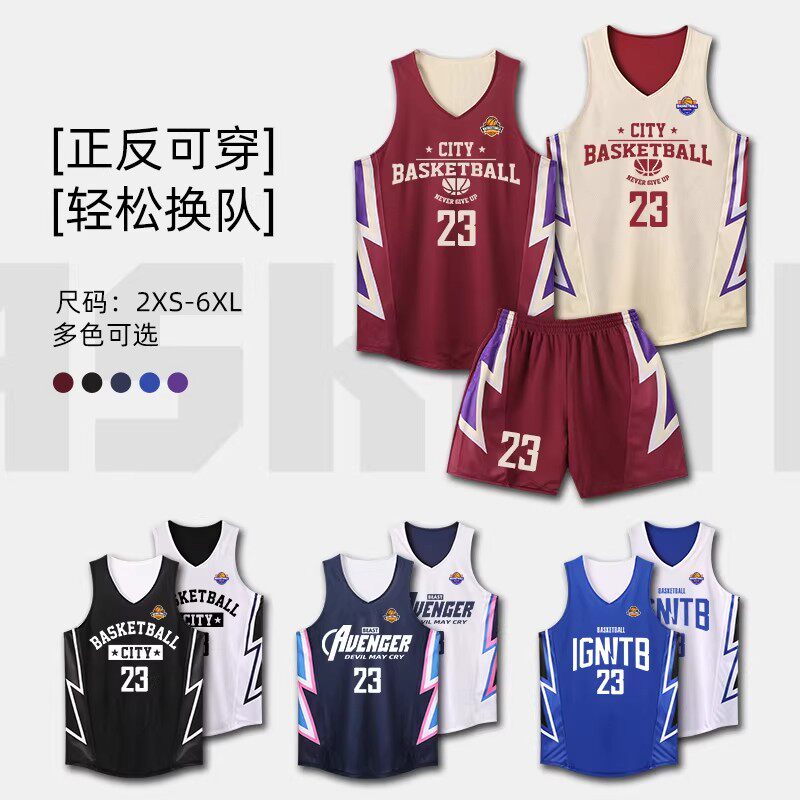双面篮球服套装男定制大学生比赛训练运动队服两面穿背心美式球衣
