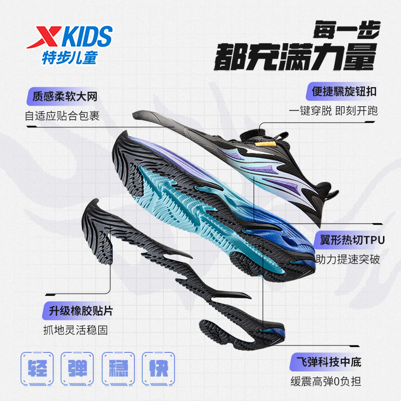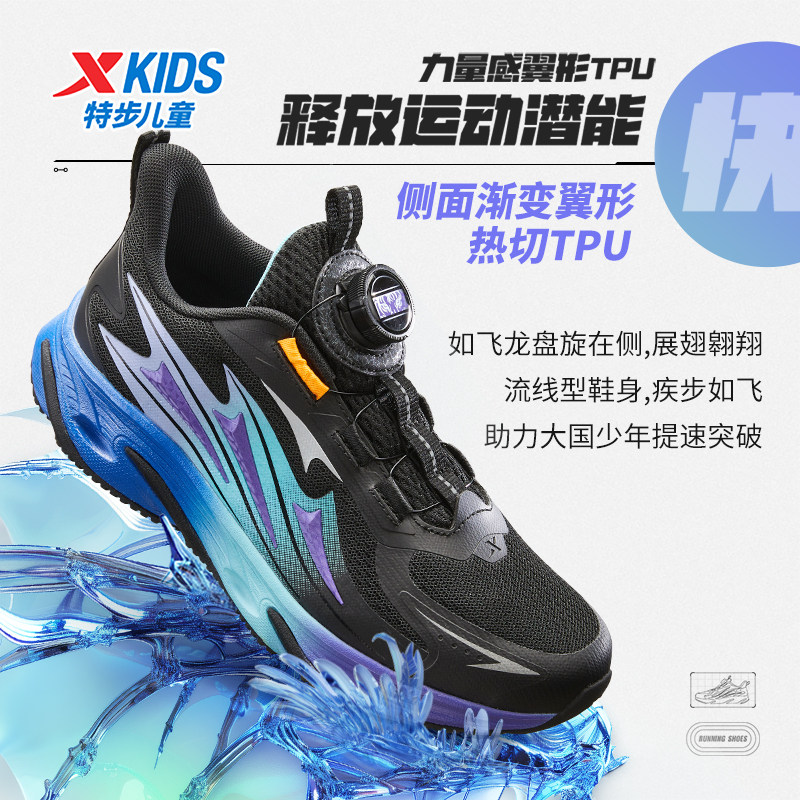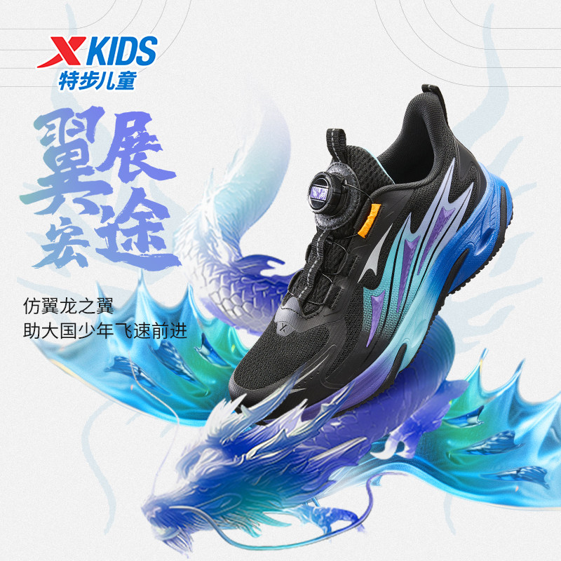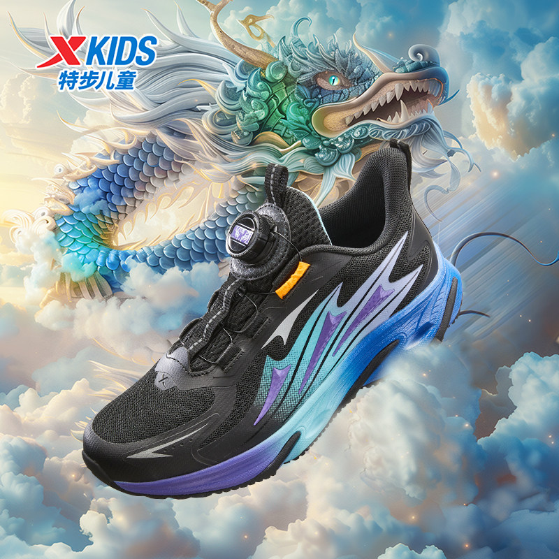 【龙翼】特步童鞋秋季新款儿童运动鞋男童跑步鞋中大童旋纽扣鞋子