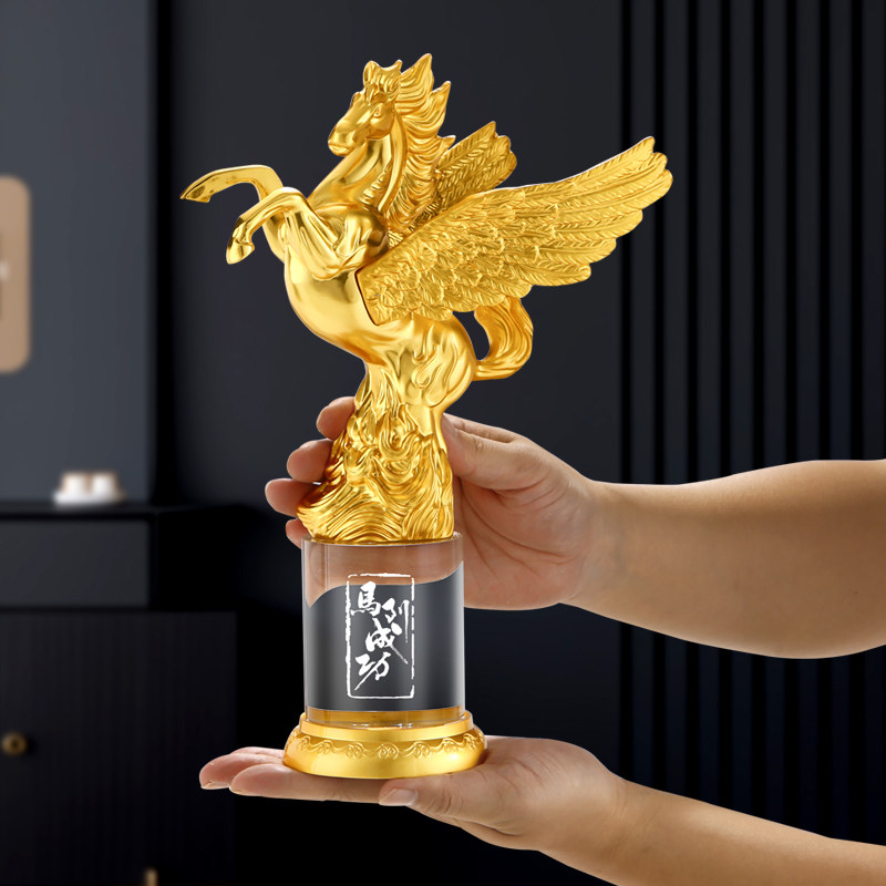 金属马水晶奖杯定制做送员工企业公司年会销售冠军优秀员工感谢牌