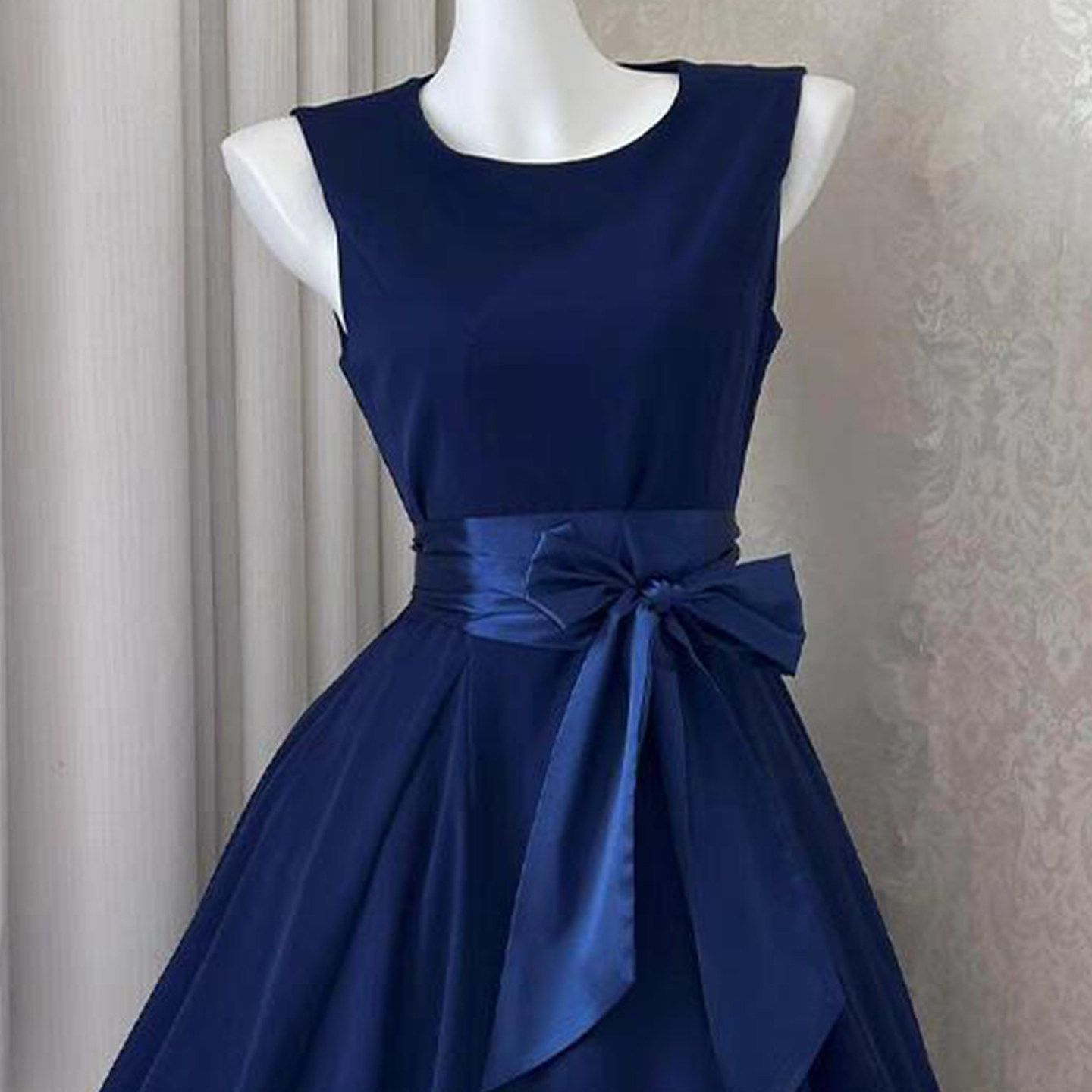 法式蓝色礼服无袖背心连衣裙女夏季2025新款小个子气质收腰中长裙