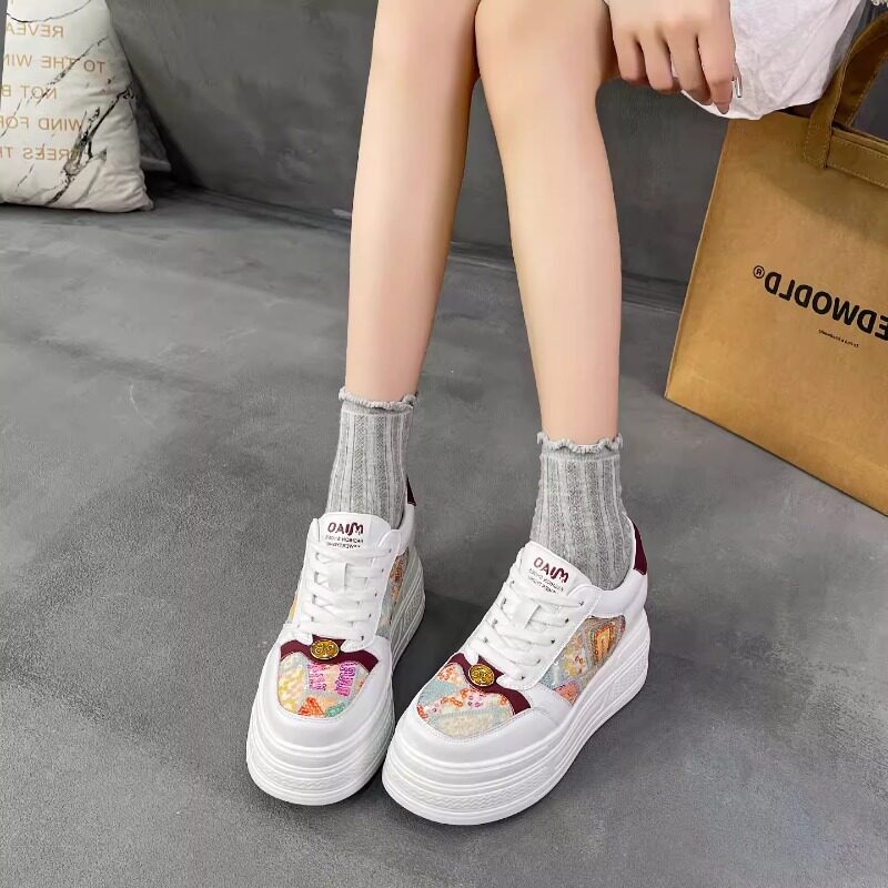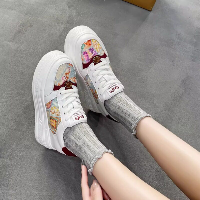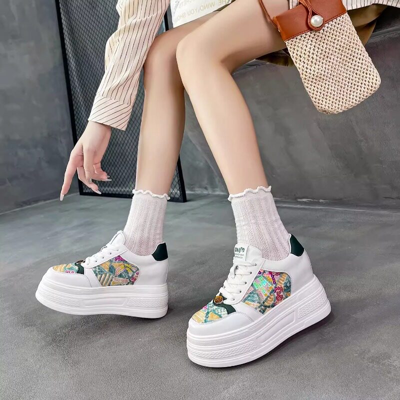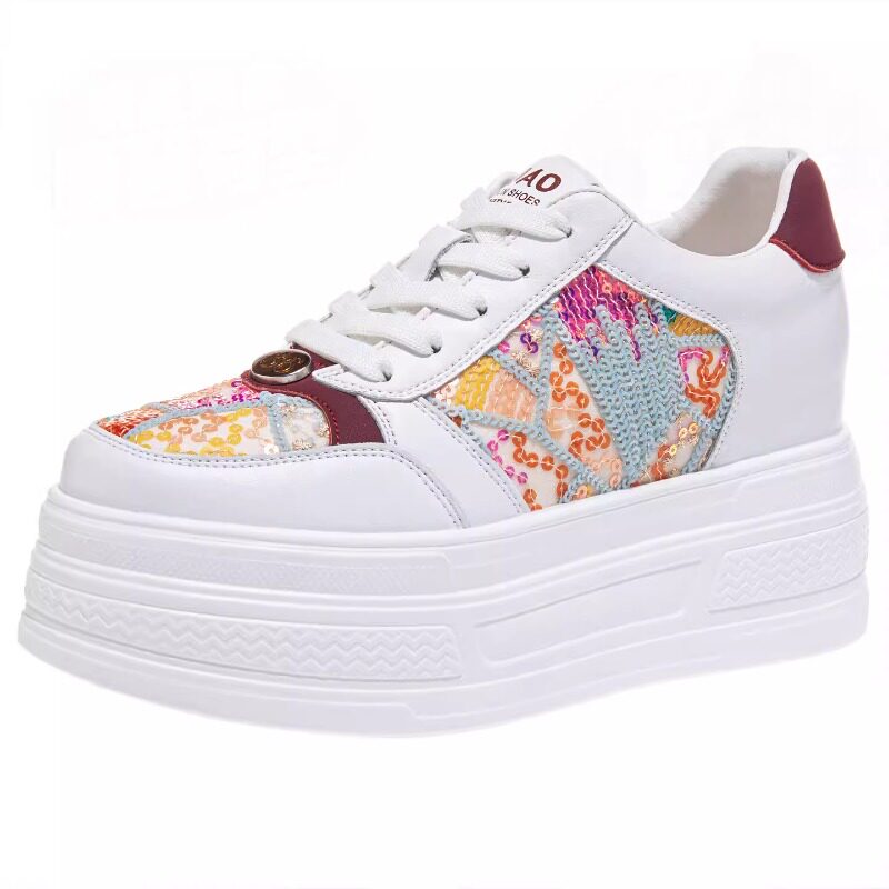 真皮内增高小白鞋女新款时尚彩色小个子小码33松糕厚底运动休闲鞋