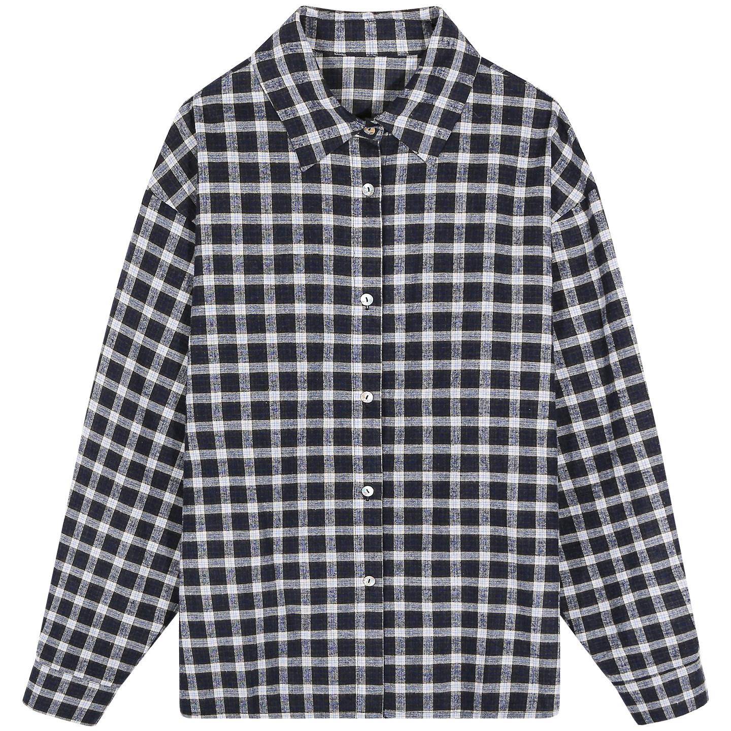落落狷介女款2026年新款春装长袖格子衬衫小个子宽松印花上衣小众