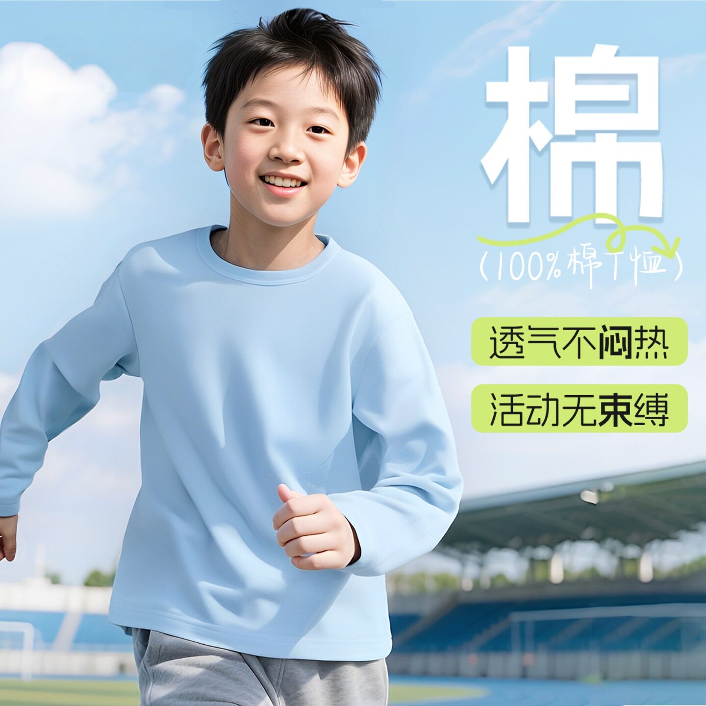 男女童长袖T恤衫打底衫儿童春秋夏季薄棉草绿荧光绿色内搭精梳棉6