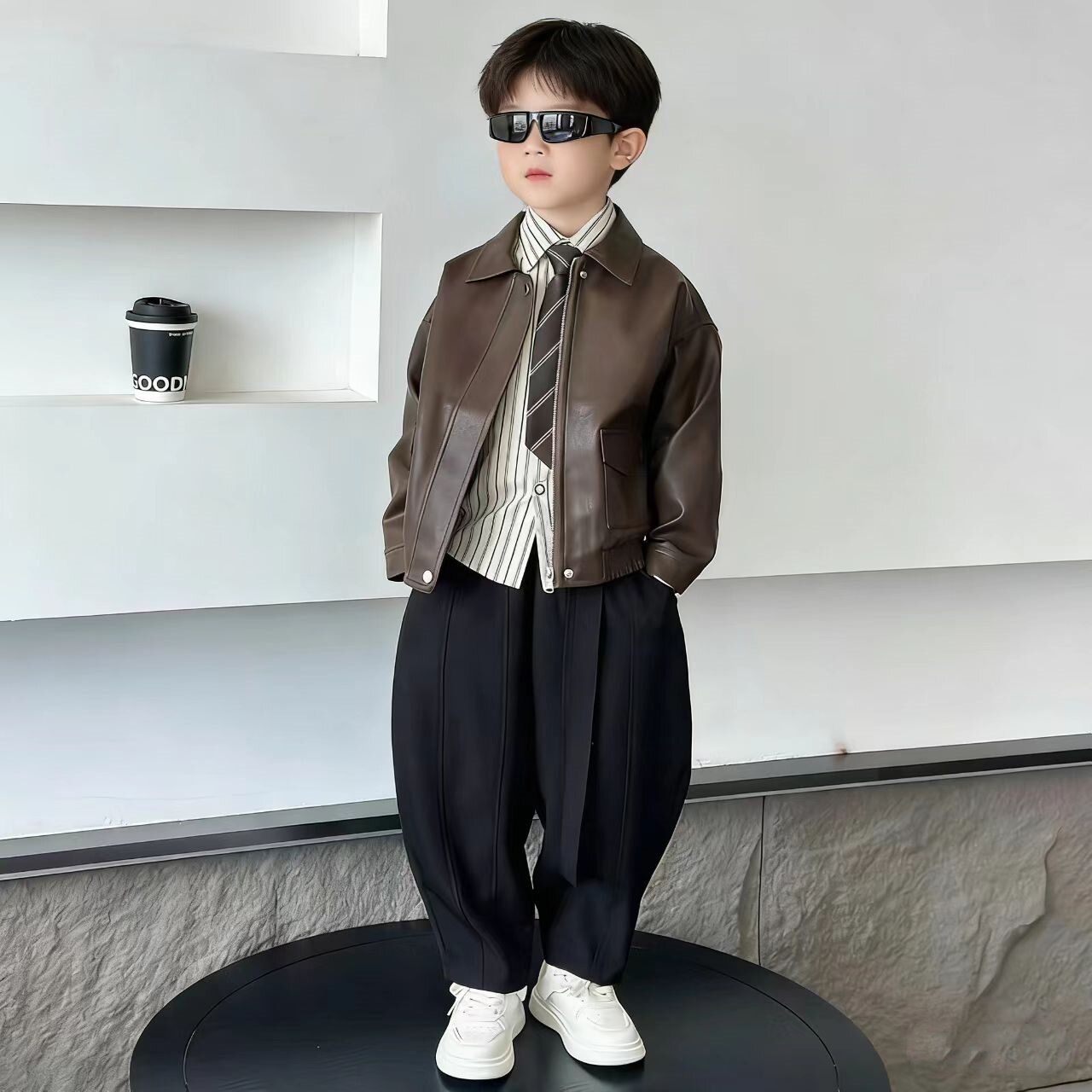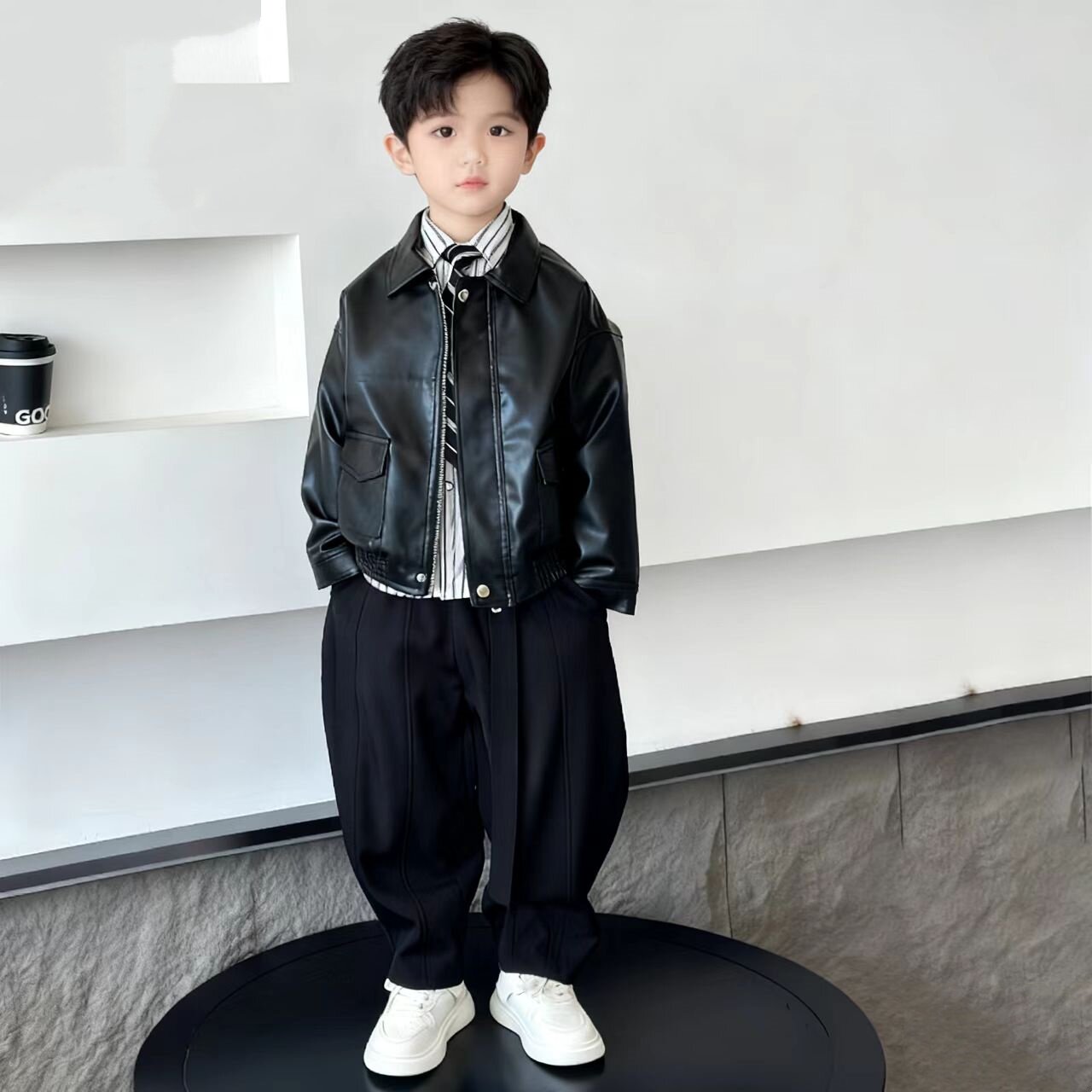 男童春秋男宝皮衣外套2026新款潮帅气时髦儿童棒球服春装男孩童装