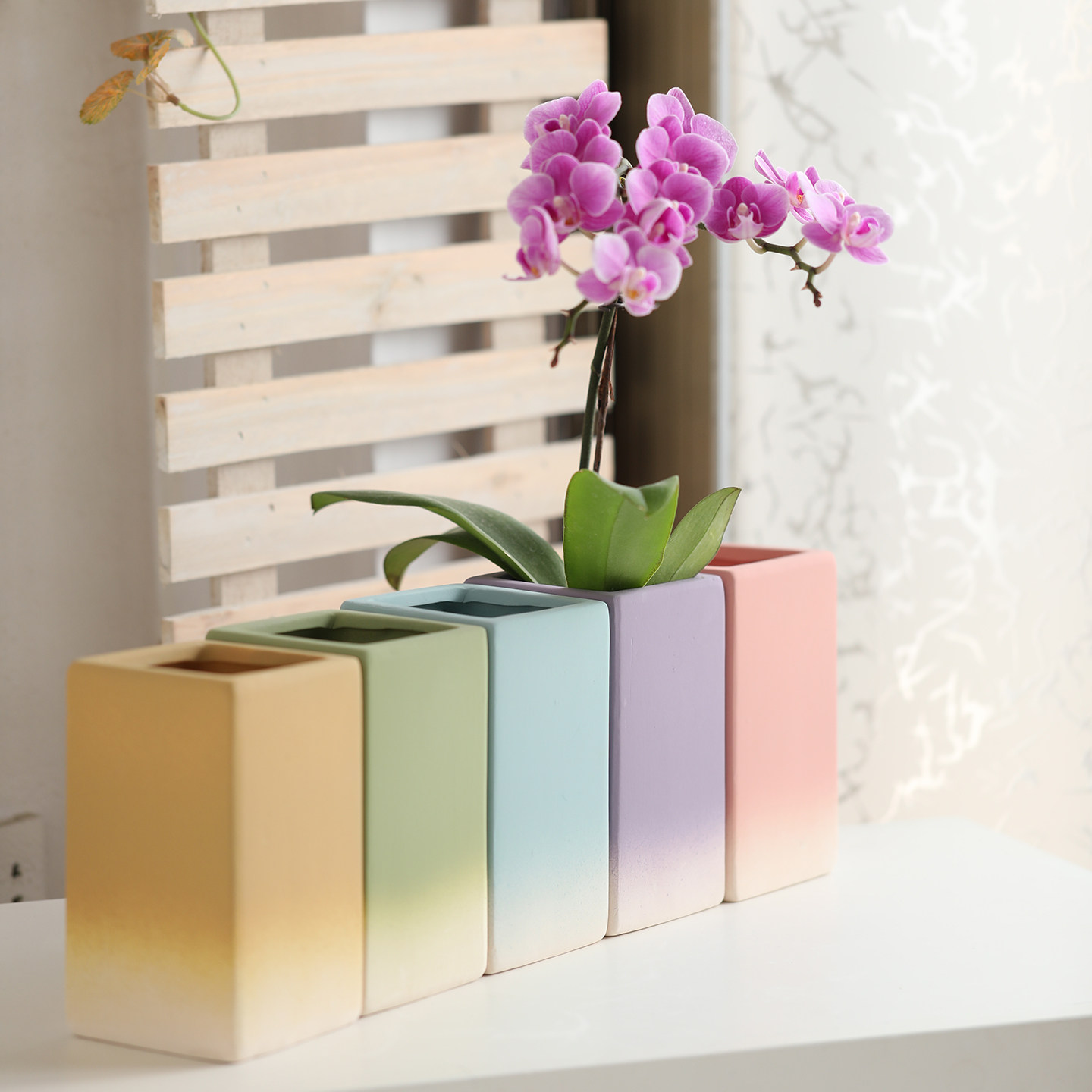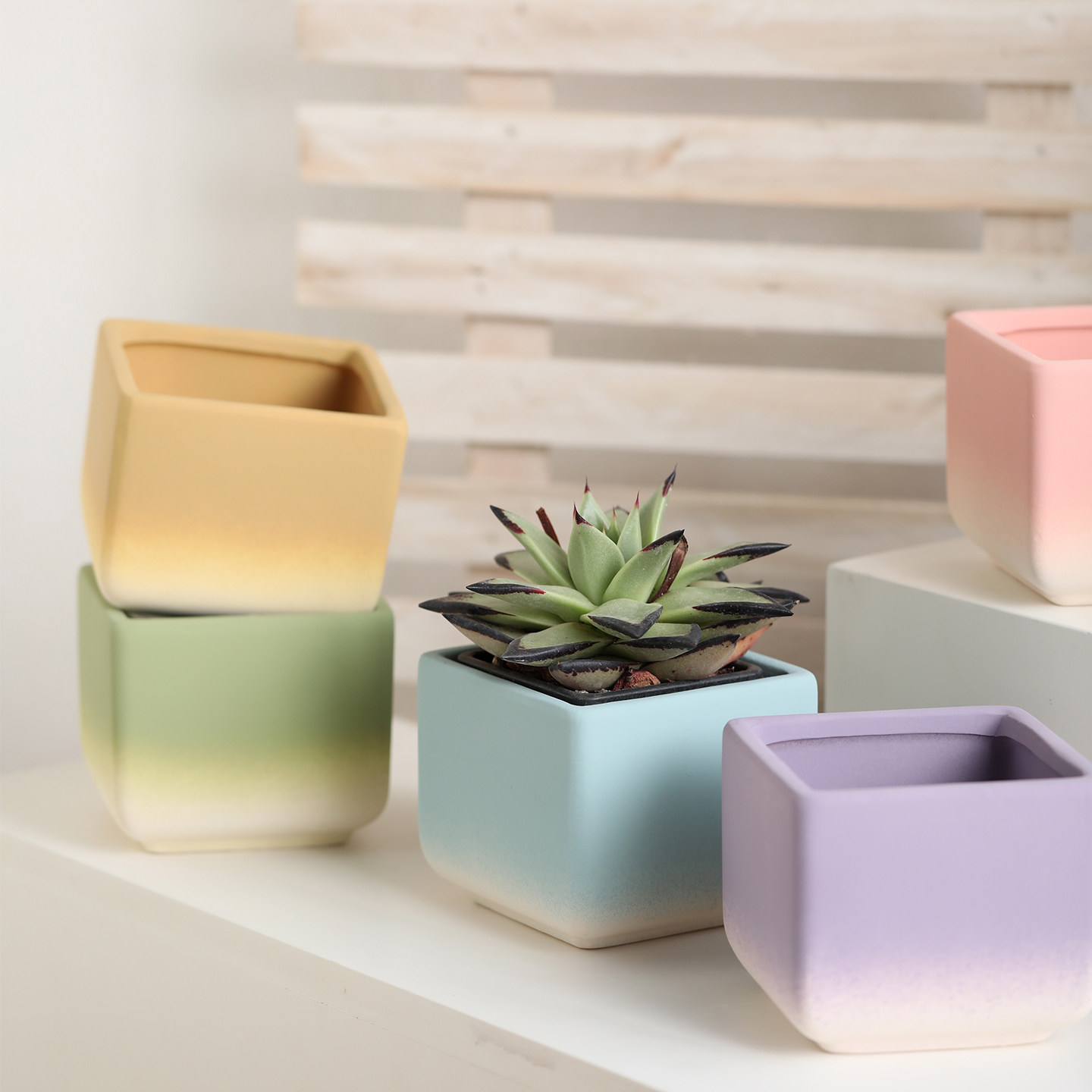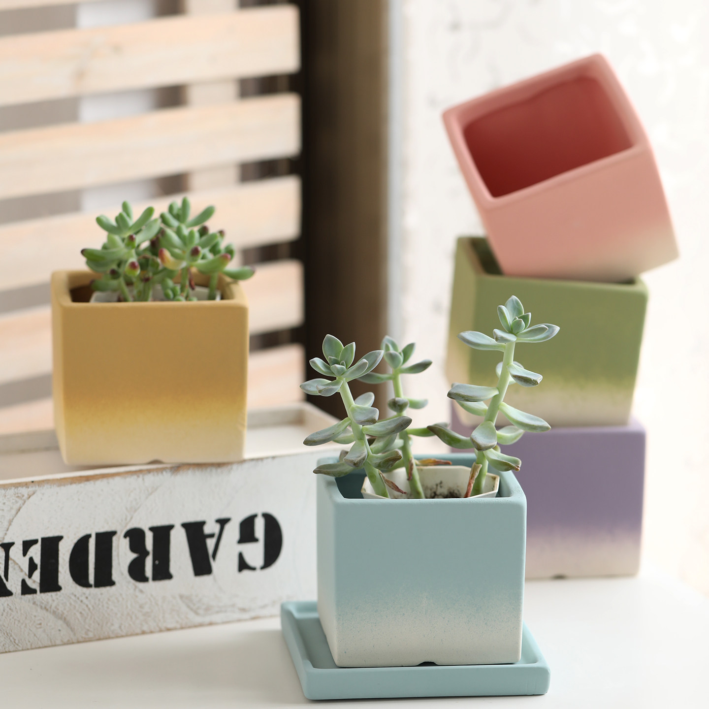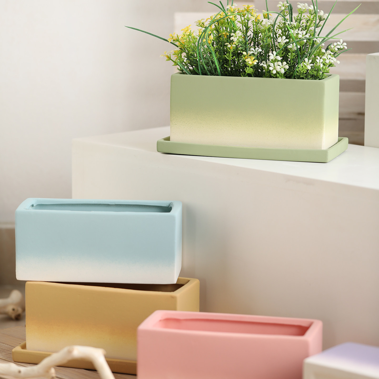 渐变色正方形长方形素烧陶瓷花盆透气吸水白陶土家用多肉兰花绿植