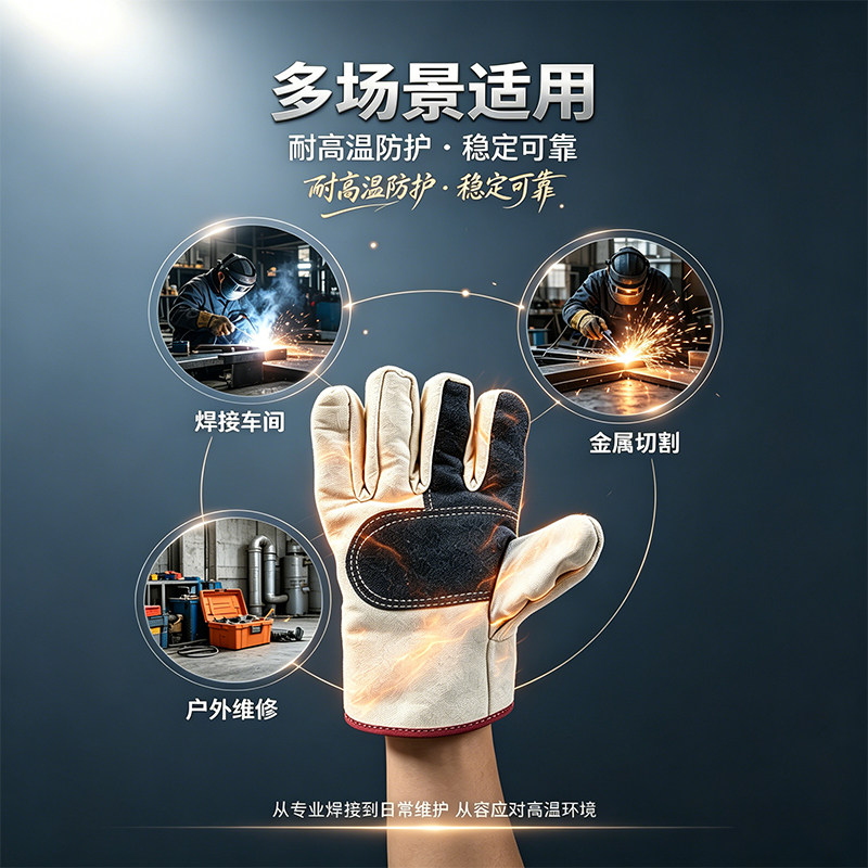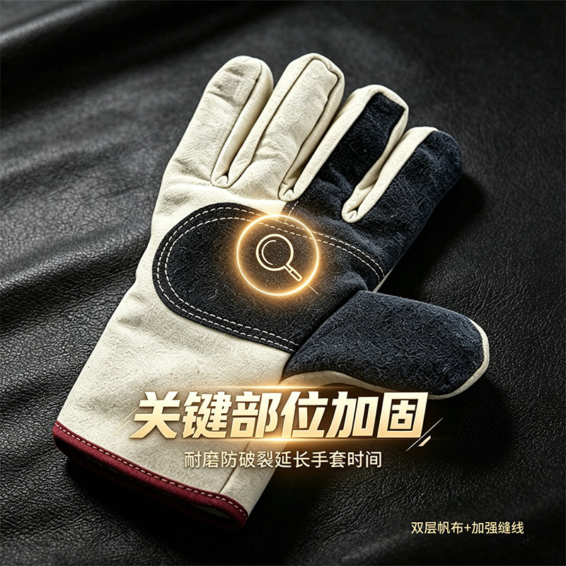 四皮加厚双层帆布手套男劳保耐磨耐用工作耐高温防烫男士专用手套
