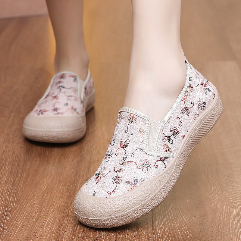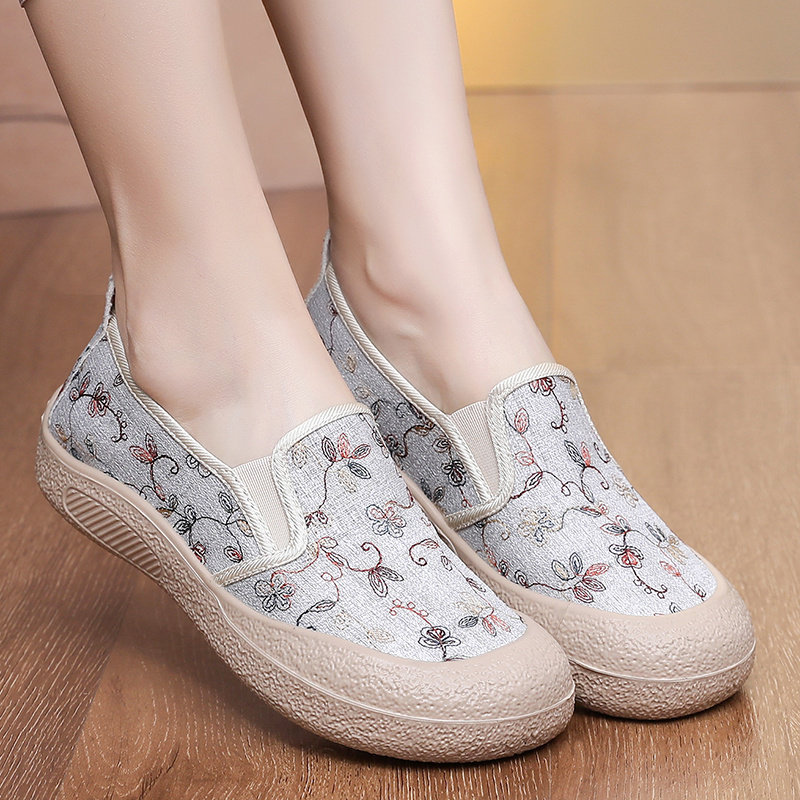老北京布鞋女鞋新款春夏软底妈妈懒人鞋透气厚底孕妇一脚蹬帆布鞋