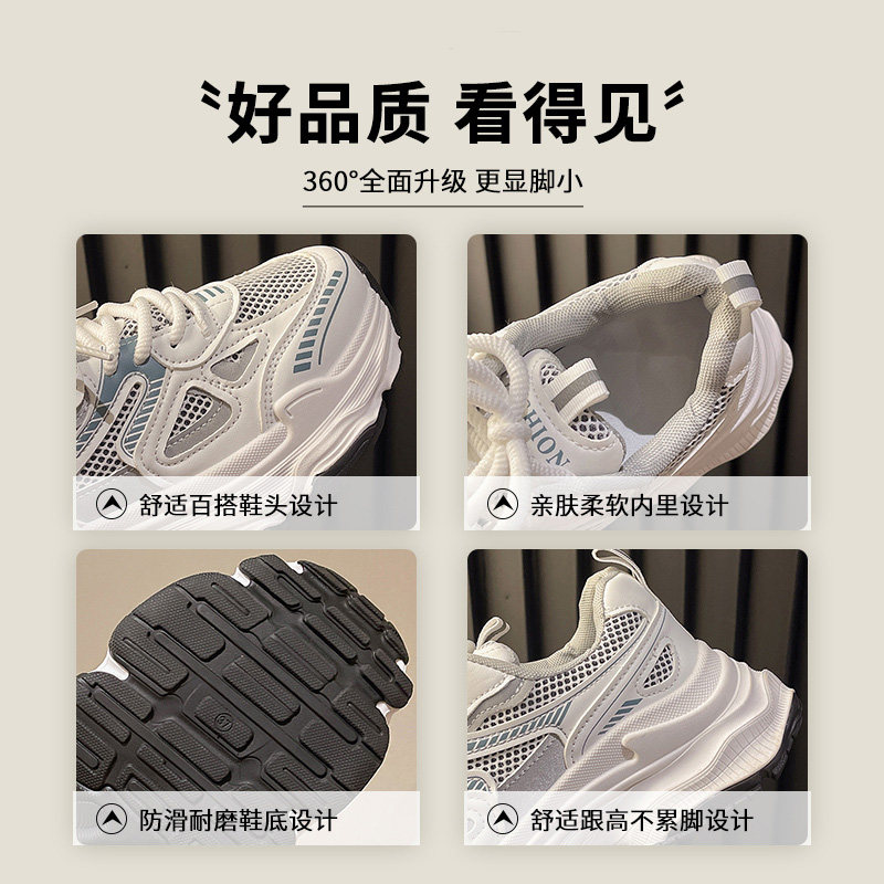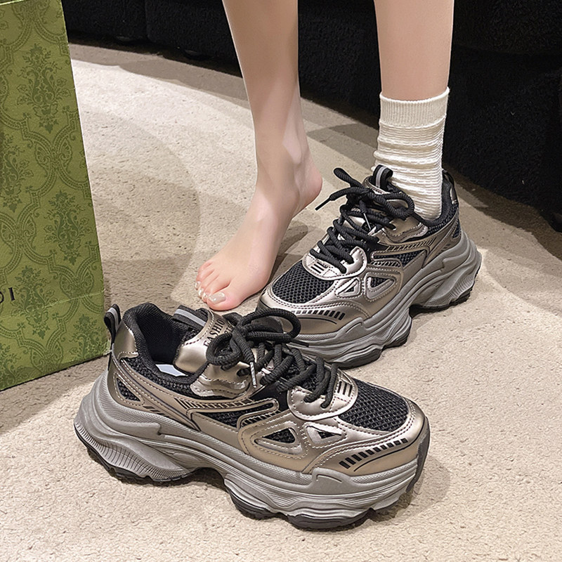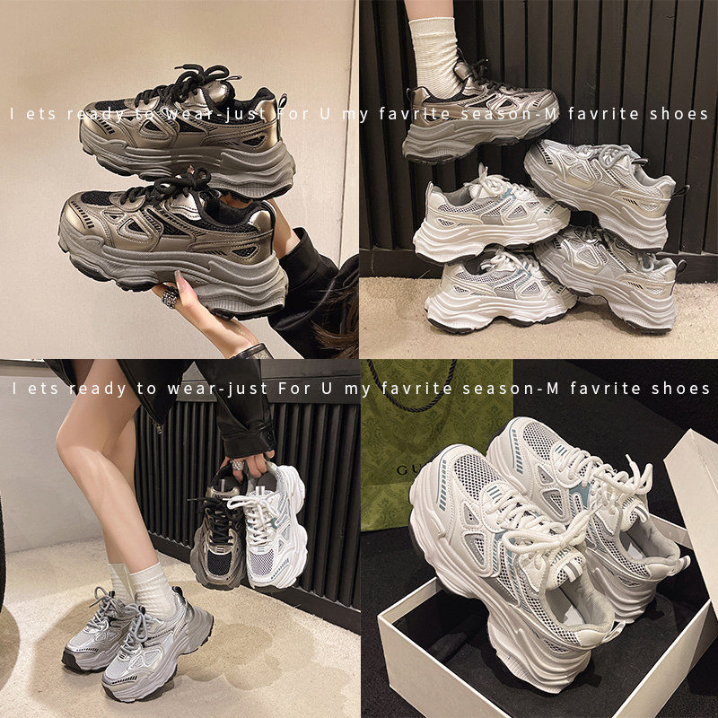 银色老爹鞋女2026新款爆款春夏季透气网面鞋子百搭厚底休闲运动鞋