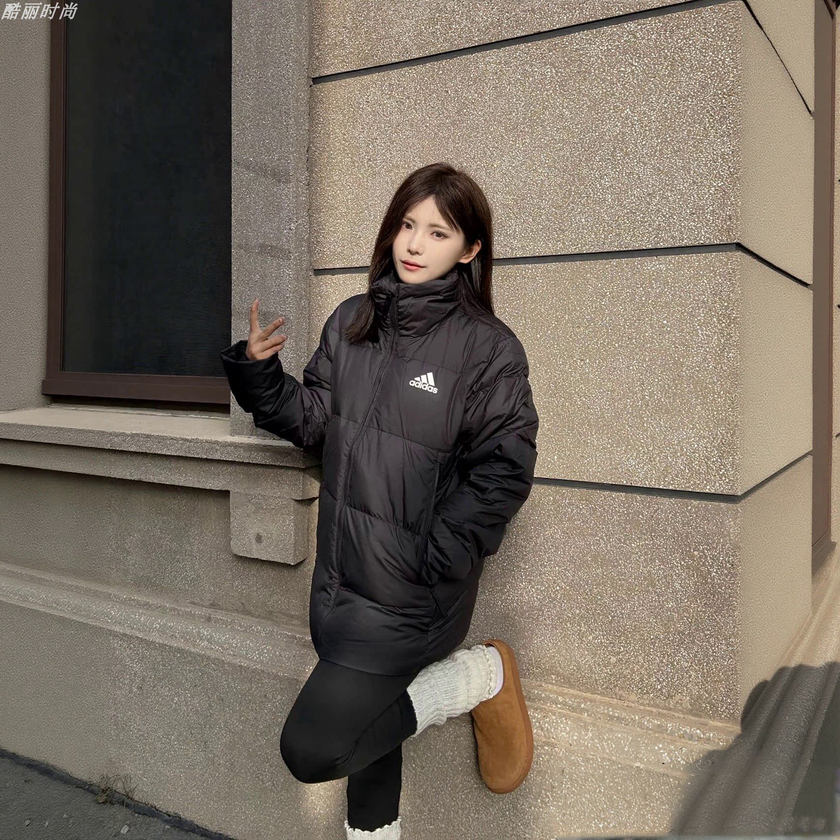 Adidas阿迪达斯羽绒服男款2025新款黑色立领防风保暖女子派克外套