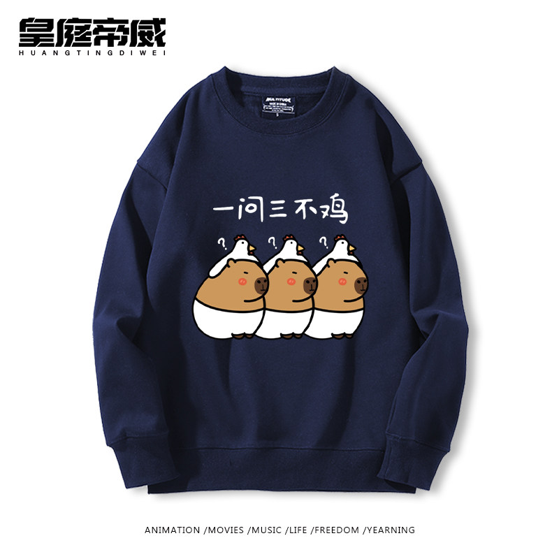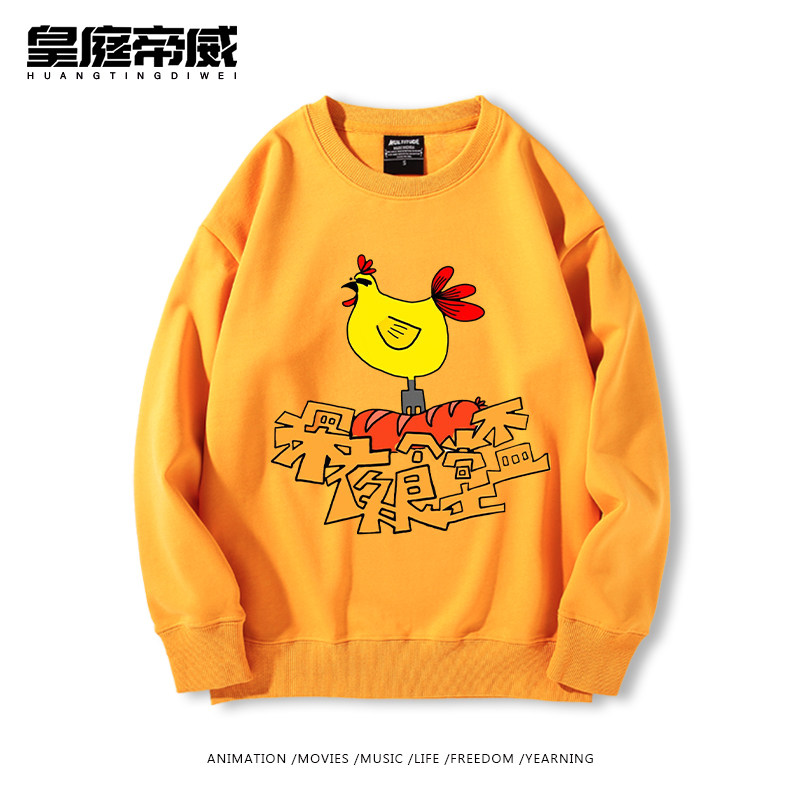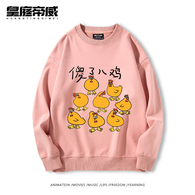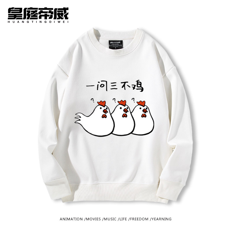 一问三不鸡小鸡趣味卡通印花周边圆领卫衣男女青少年秋冬加绒衣服