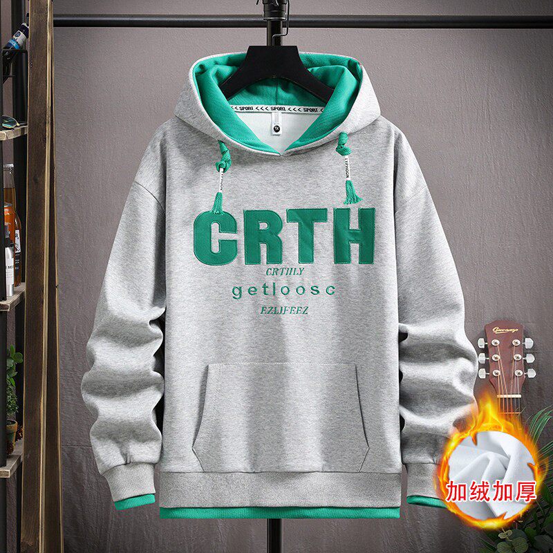 13青少年秋冬季加绒卫衣12岁男孩初中学生连帽加厚纯棉上衣15大童