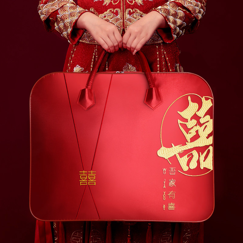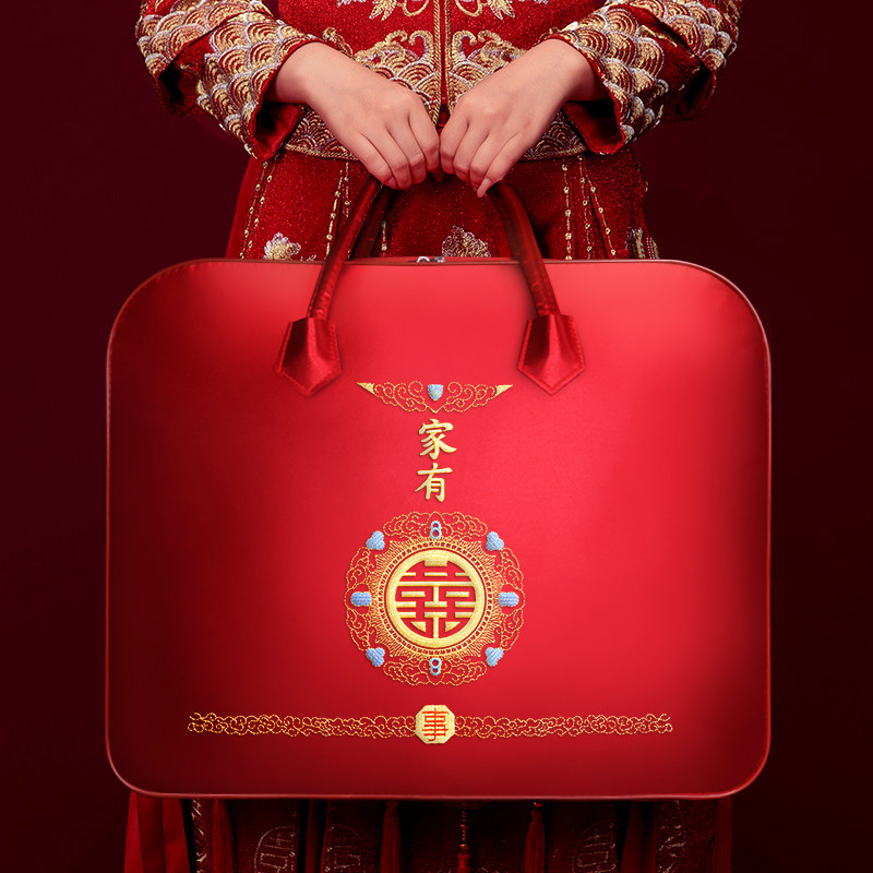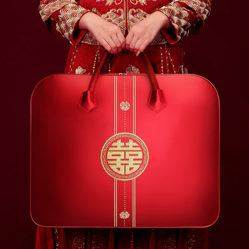 刺绣结婚棉被收纳袋高档缎面牛津布四件套包装袋红色喜庆结婚用品