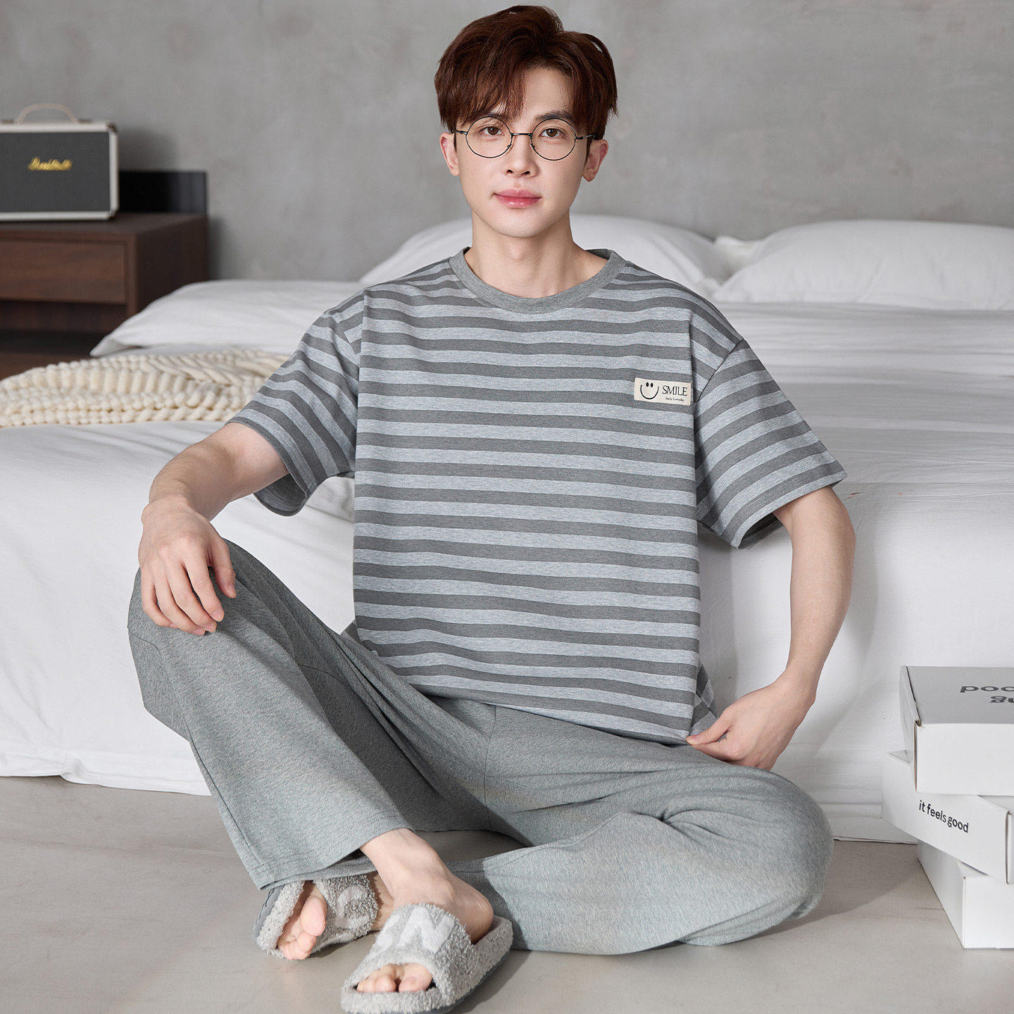 短袖长裤大童高级感条纹纯棉男孩青少年学生夏季男款2026新款睡衣