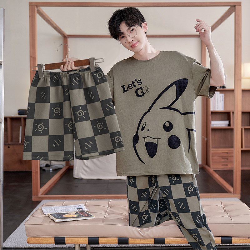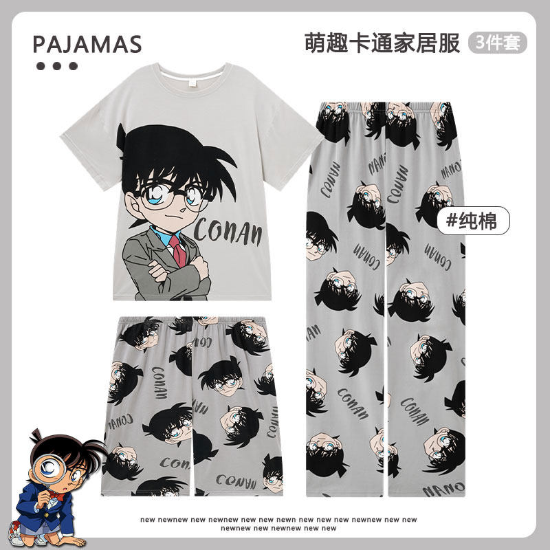 311线报网描述:柯南睡衣男士夏季纯棉短袖大码三件套青少年