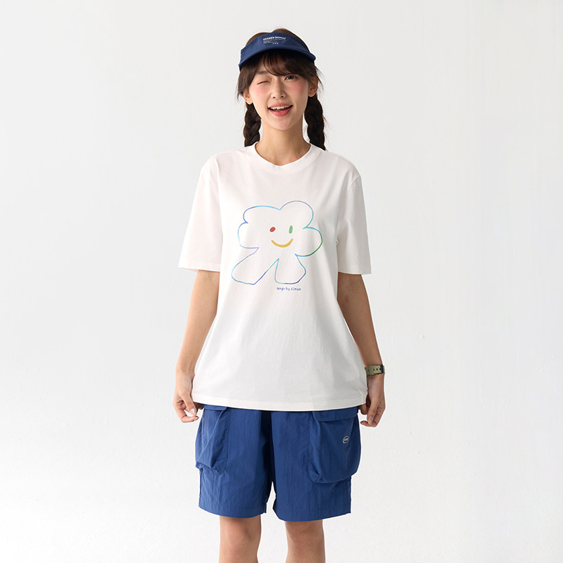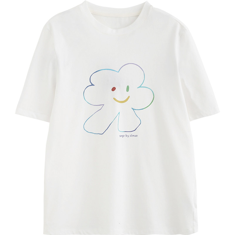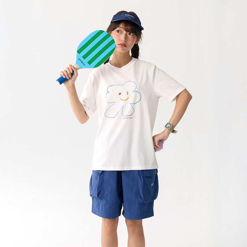 诺诺公主S1N初中生2026夏季线条印花短袖T恤女青少年运动休闲上衣