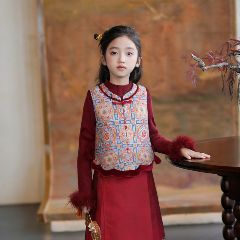 54002女童新年装马甲背心汉服马面裙2026春季款儿童中国风过年服