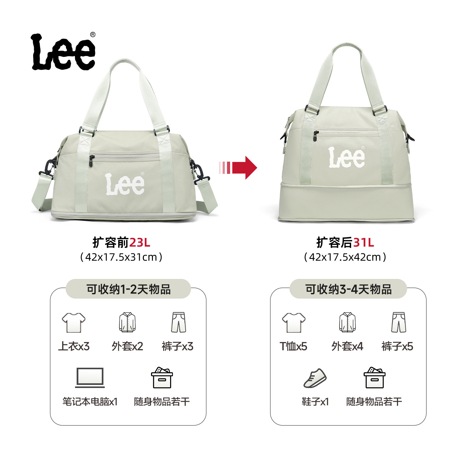 Lee短途旅行袋户外轻便干湿分离手提包出差大容量扩容折叠行李袋