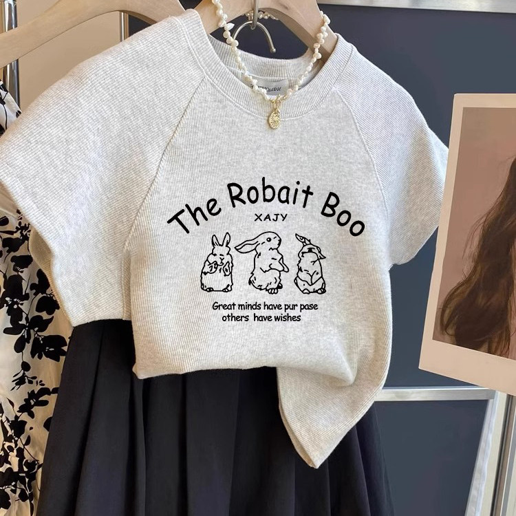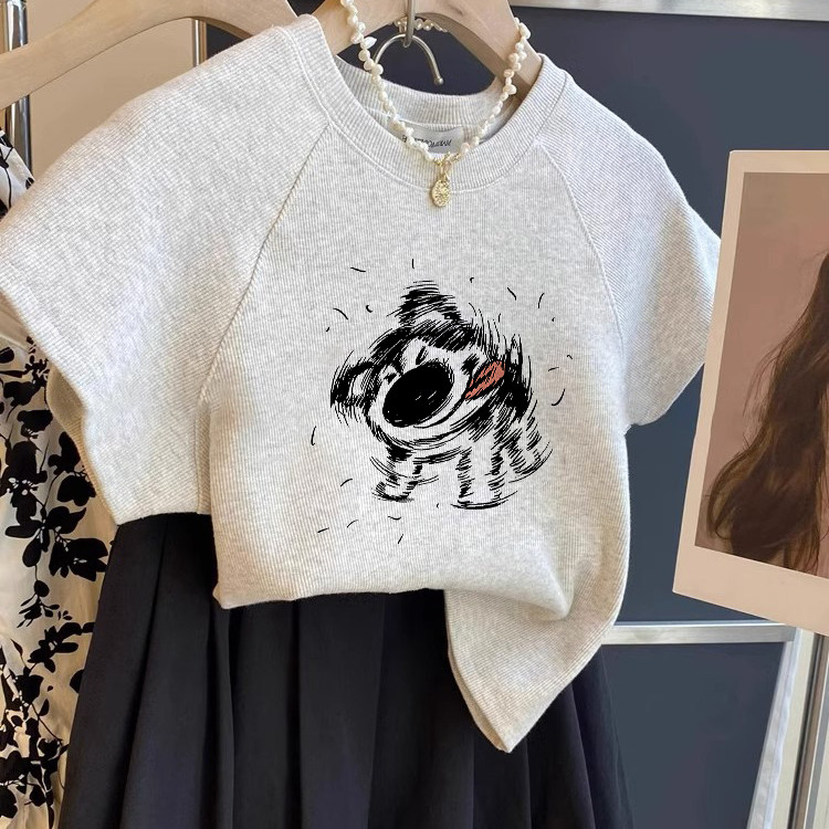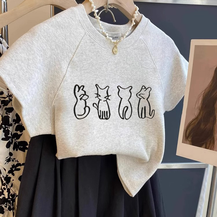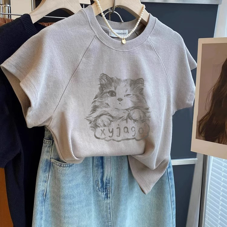 洋气修身短袖小上衣女款2026新款重磅纯棉小猫印花短款t恤衫夏季