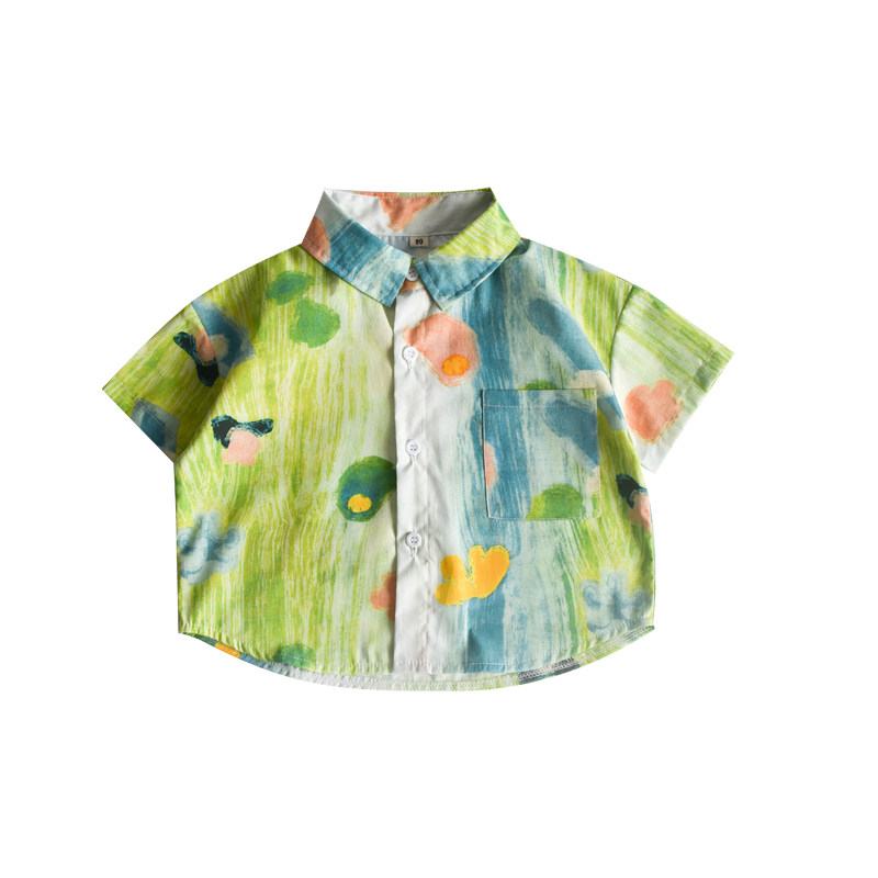 显白夏装!儿童短袖衬衫休闲风纯棉薄款夏季男童洋气半袖衬衣潮