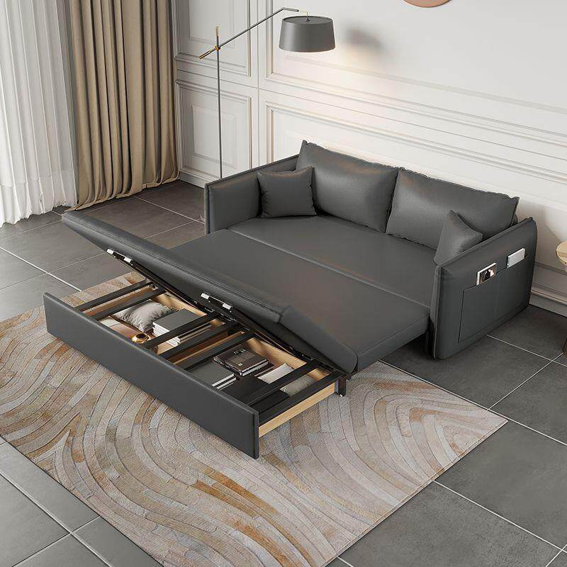 真皮沙发床皮质折叠一体两用多功能客厅双人小户型北欧轻奢抽拉